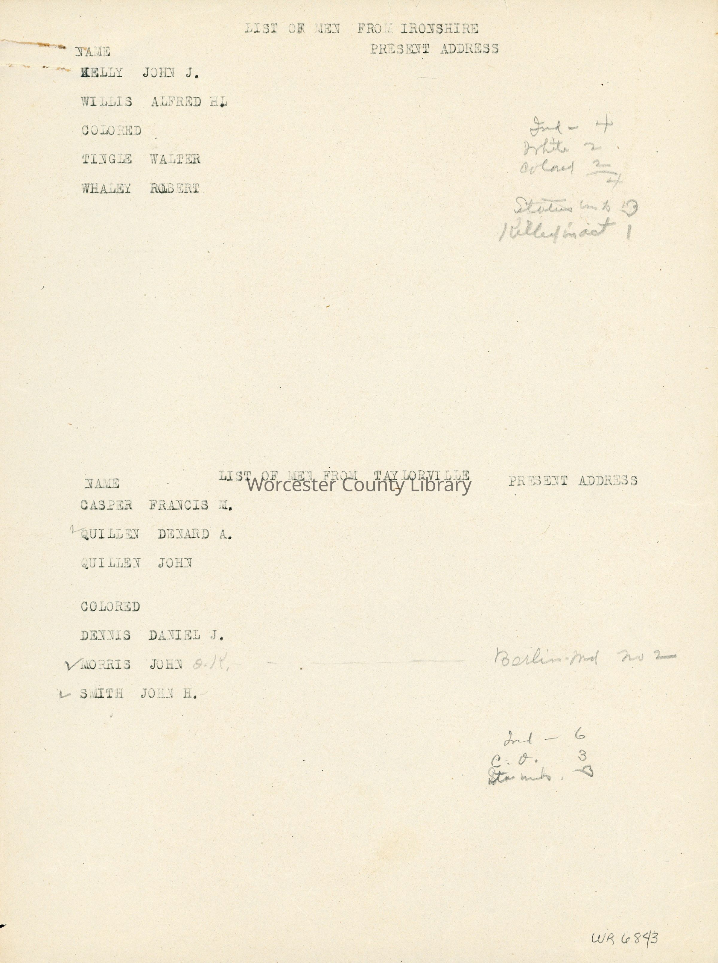 List of Men from Ironshire, List of Men from Taylorville, World War IEntry/Object ID