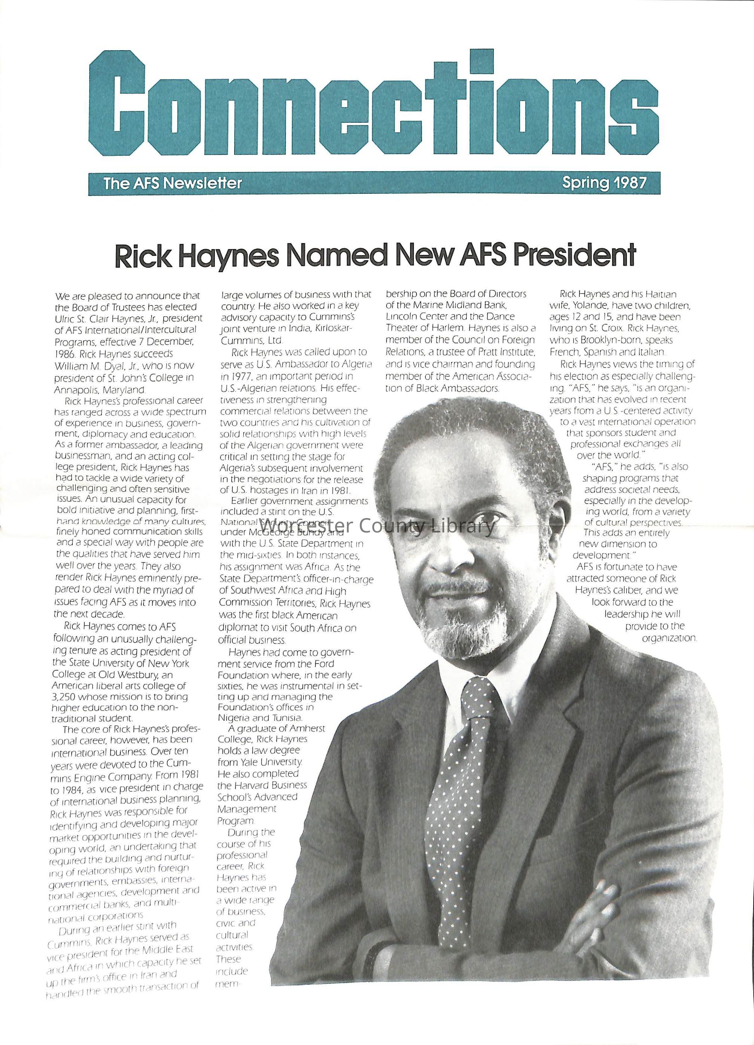 Newsletter, Connections: The AFS Newsletter, Spring 1987Entry/Object ID