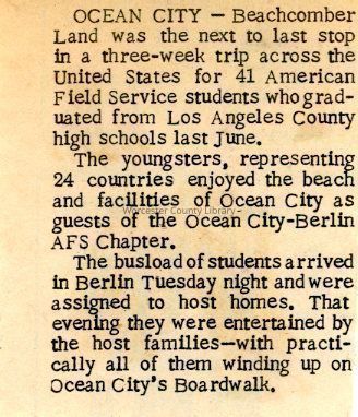 In Ocean City they really enjoyed the ocean and most spent practically all of Wednesday afternoon in the water. Very few of them were ready to leave Beachcomber Land when they boarded their bus for the next hop in their trip to their native countries.