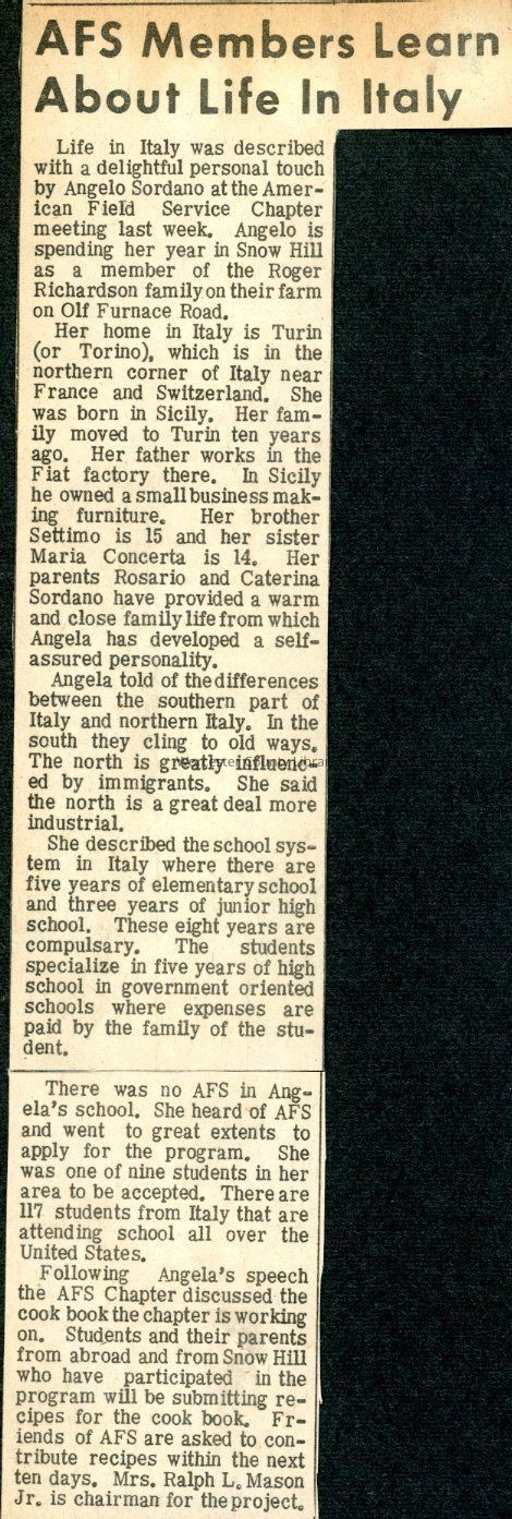 Angela Sordano, Caterina Sordano, Maria Concetta Sordano, Rosario Sordano, Settimo Sordano, Roger Lee Richardson, Fay Richardson, American Field Service, Snow Hill High SchoolCreated By