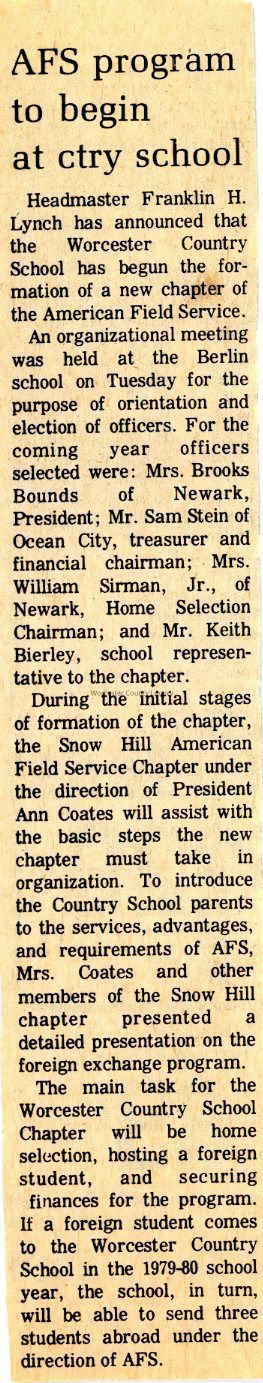 Newspaper clipping, “AFS program to begin at ctry school,” 1978Entry/Object ID