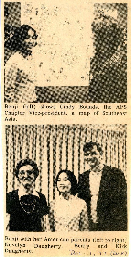 Newspaper clipping, Benjalak Huayrerai and Cindy Bounds, Dec. 1, 1977Entry/Object ID