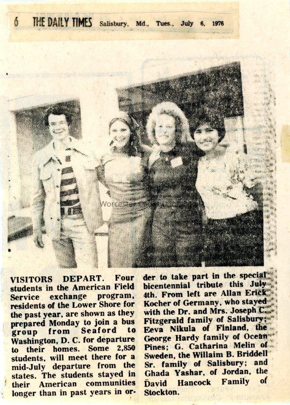 Newspaper clipping, “Visitors Depart” (Allan Erick Kocher, Eeva Nikula, G. Catherina Melin, and Ghada Yashar), July 6, 1976Entry/Object ID