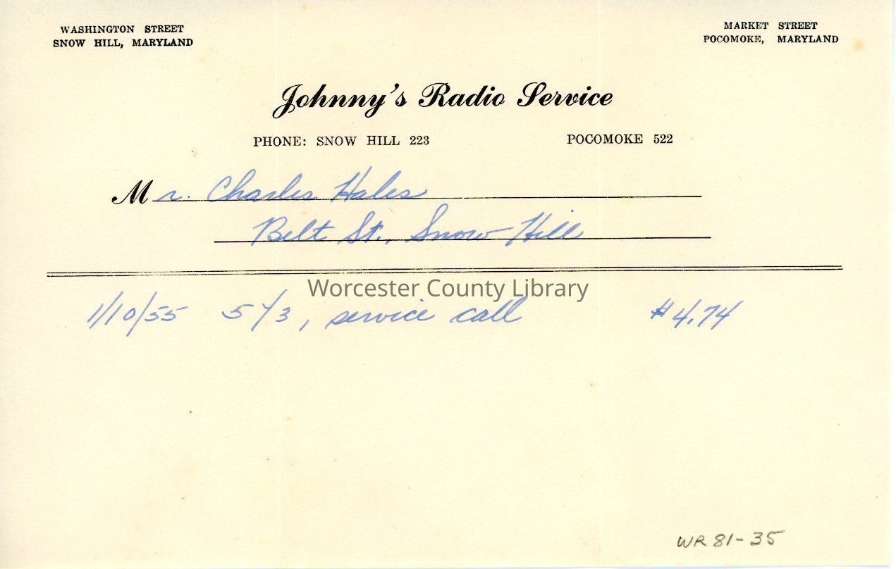 Statement, Johnny’s Radio Service, Jan. 1955Entry/Object ID