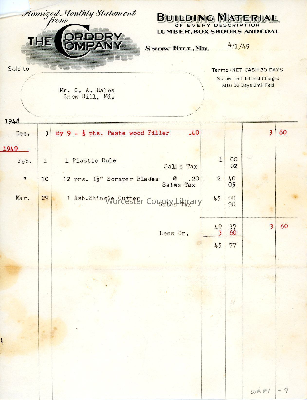 Statement, The Corddry Company, April 1949Entry/Object ID
