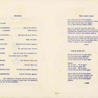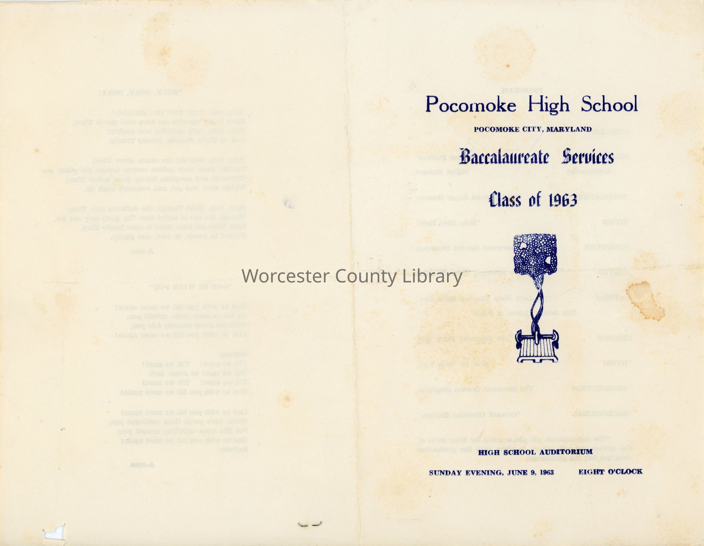 Program, Baccalaureate, Pocomoke High School Class of 1963, Jun. 9, 1963Entry/Object ID