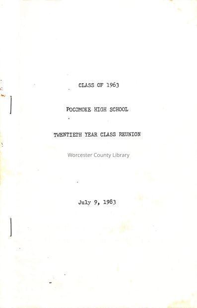 Pocomoke High School, Pocomoke Elks Lodge, Richard Earl Small, Jerry Nicholas, Gordon Robert Barnes, Constance Smack Beckwith, Donald Lane Bennett, Beverly Howard Bowden Watson, Kent James Brenner, Tom Brooks, Bonnie Ann Holland Carroll Crawford, Robert Edward Coulbourne, Joyce Ann Merrill Collins, Michael Gary Conaway, Sandra Lea Brock Dryden, Robert Julius Frostrom, Jr., JoEllen Cannon Carter Gladding, Donna Jane Wilkerson Hardin, Rebecca Ann Taylor Heiser, William Howard Herz, Don Robert Holdren, Hilda Mae Brown Horner, Christine Louise Lundstedt Howard, Mary Sue Luch Hurst, Patsy Virginia Gray Johnson Keiser, Martha Florence Byrd Jones Roe, Ross Leonard Kelly, Diane Outten Killmon, Wilson Knight, Shirley Jean Sigrist Rantz Lewis, Byron Thomas Lipham, James Mapp, Pamela Lee Nock Mariner, Rochelle Anne Boole Matthews, Donnie McCready, Valerie Ann Corizzo Meehan, David Phillip Nelson, Jimmy Northam, Rose Ellen Nock Owens, Frances Pearl Selby Pasquith, Constance Pearl Powell Pruitt, Don Edward Pruitt, Donna Faye Marriner Quick, Madeline McDaniel Scott Horne, Bonnie Faye Seawell, Yvonne Silk, Richard Barry Spinak, Thomas Franklin Stark, William Benson Sturgis, Jr., Charles Weldon Trader, Jr., Merrill Lee Walters Truman, Barry William Tull, Diane Jane Redden Tull, Kenneth Lynn Tull, Carole Frances Peacock Voss, Melvyn T. Wahlberg, Joyce Elaine Petitt Whitehead, Carol Elizabeth Brittingham Wilkes, Thomas William Wilkins, Aline Mariner Wilson Wharton, Nancy Ann Campbell Wood, Cheryl Christine Callahan WyattPerson or Organization
