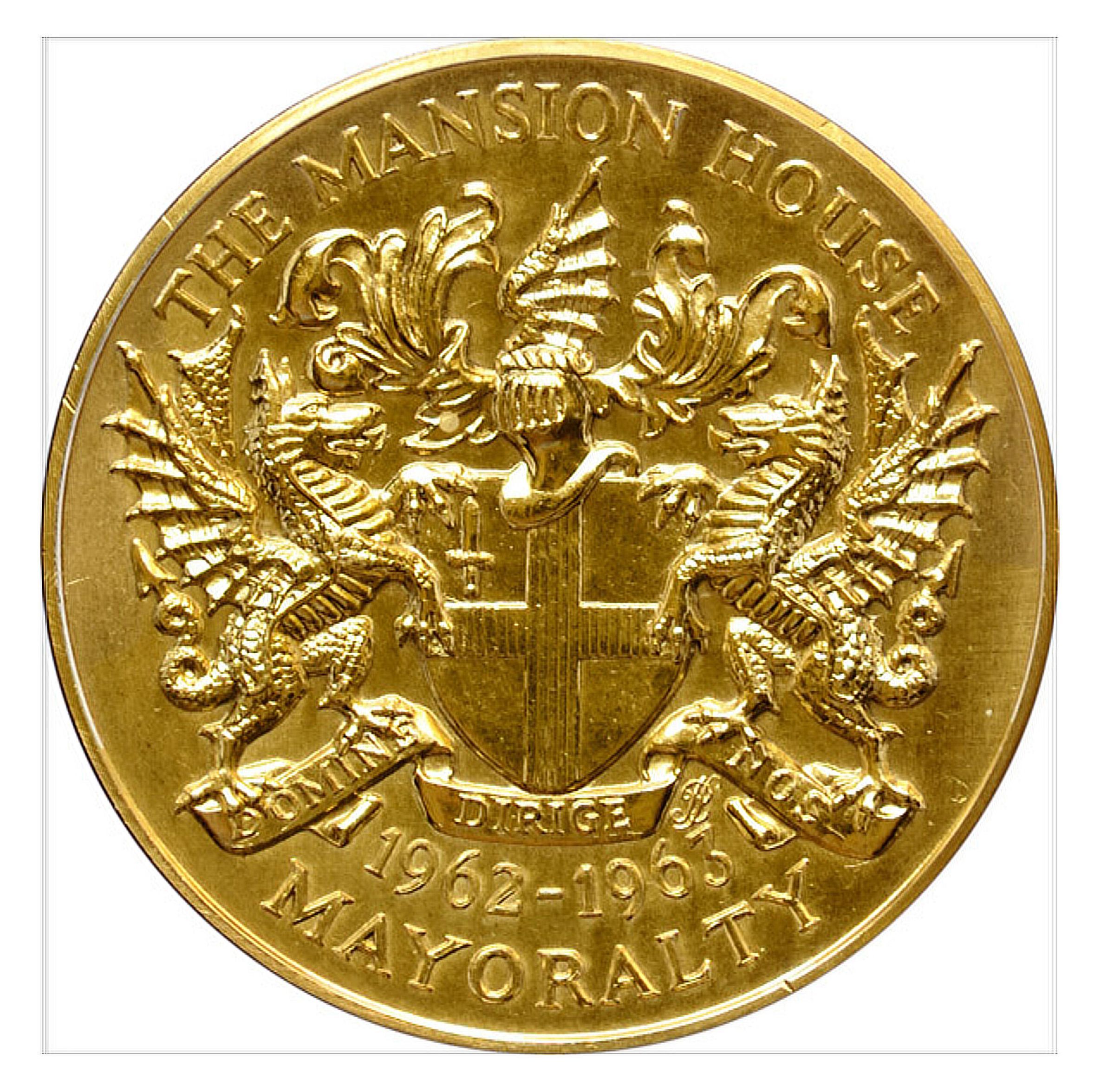 City of London Lord Mayor’s presentation medal 1962-63 mounted in Perspex paperweightEntry/Object ID