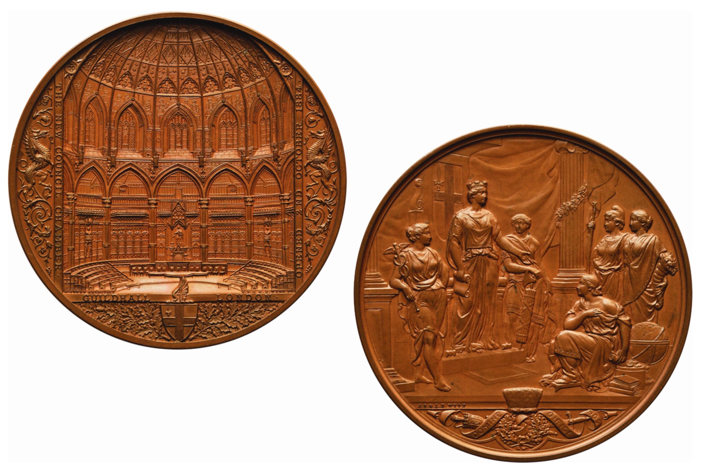 Commemorative medal, bronze in case. City of London series – Opening of Council Chamber at Guildhall 2.10.1884Entry/Object ID