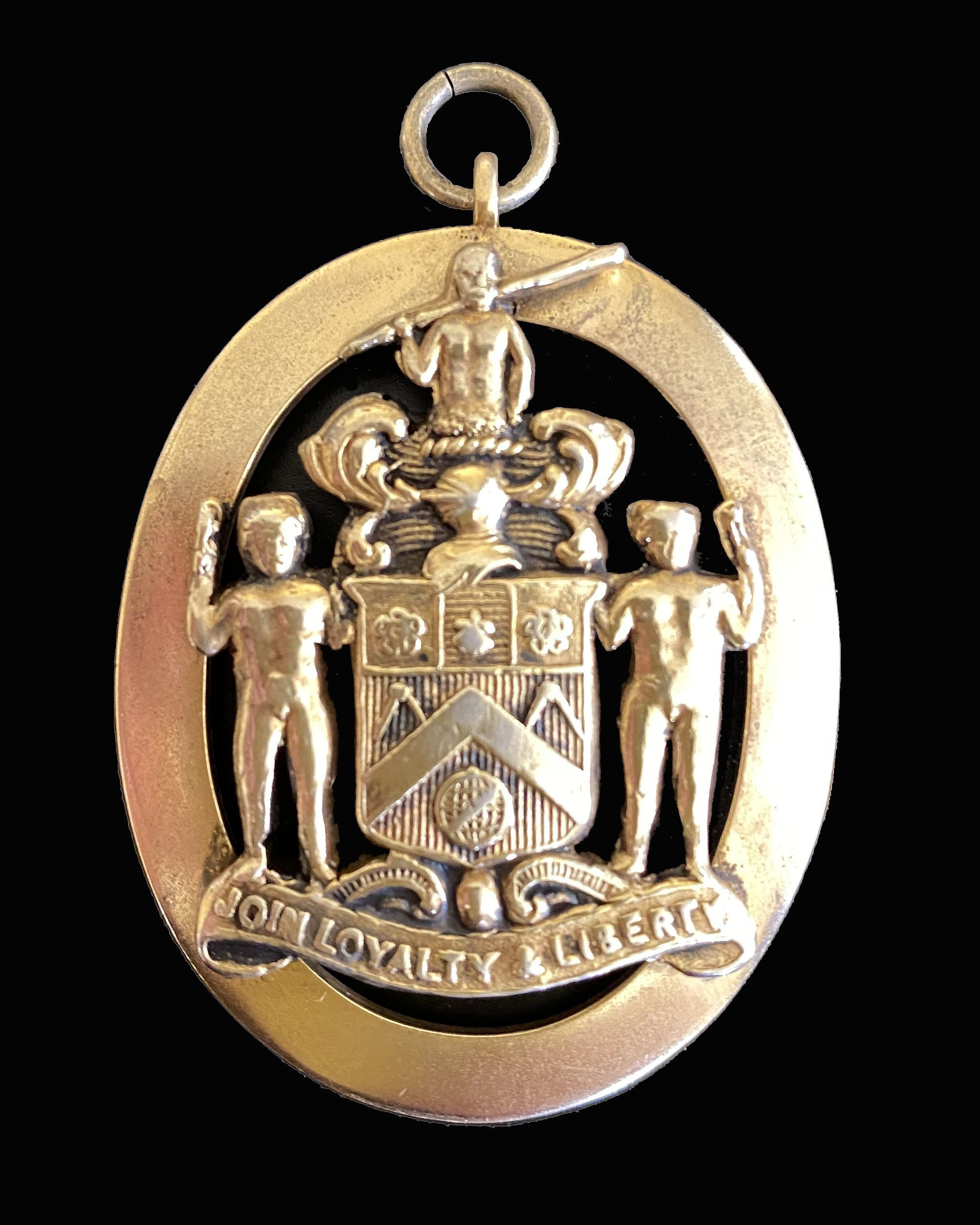 Past Masters Badge of Wo. Co. Joiners and Ceilers , cast oval