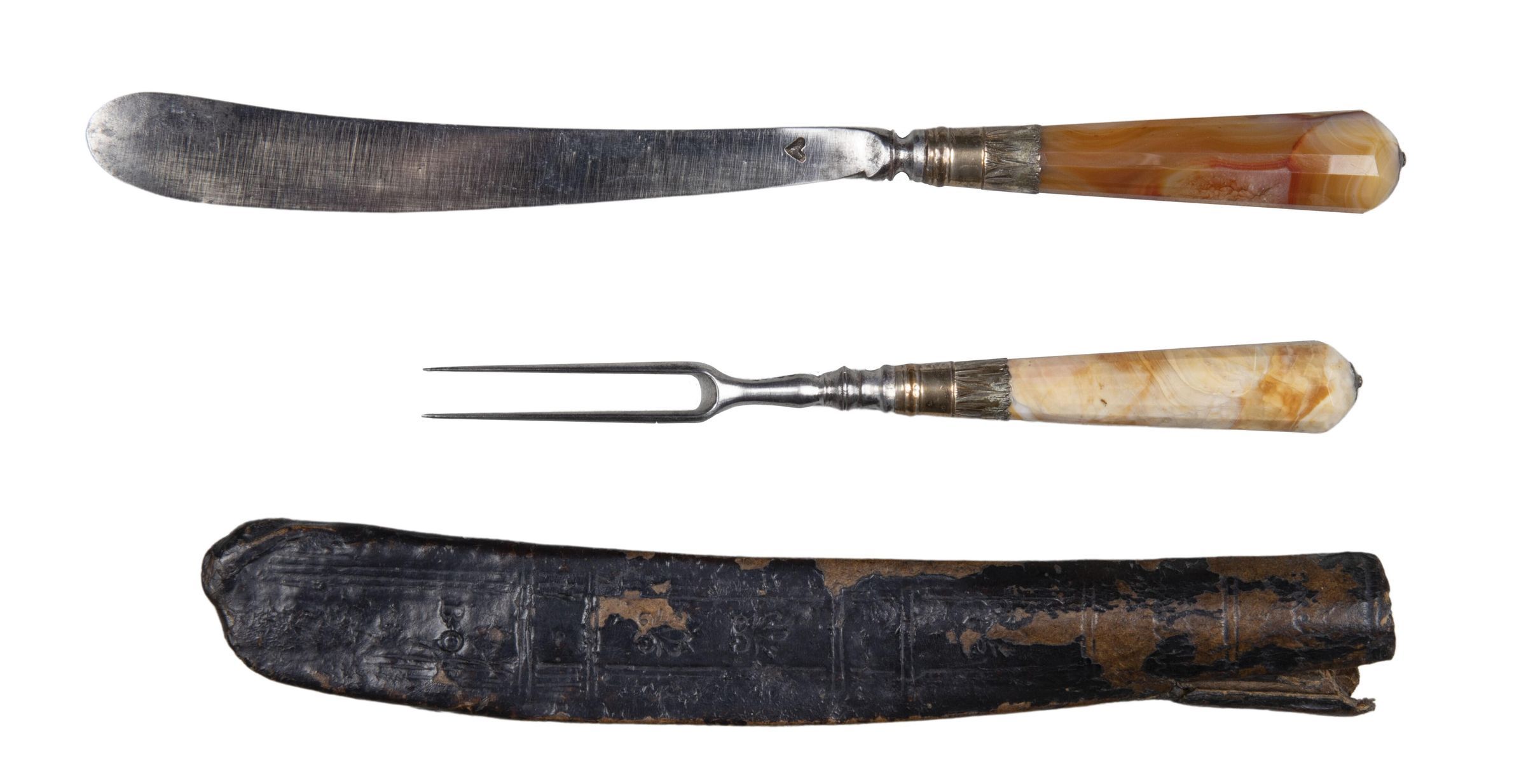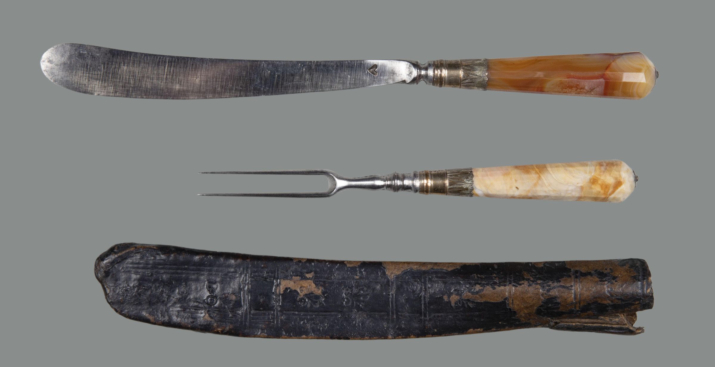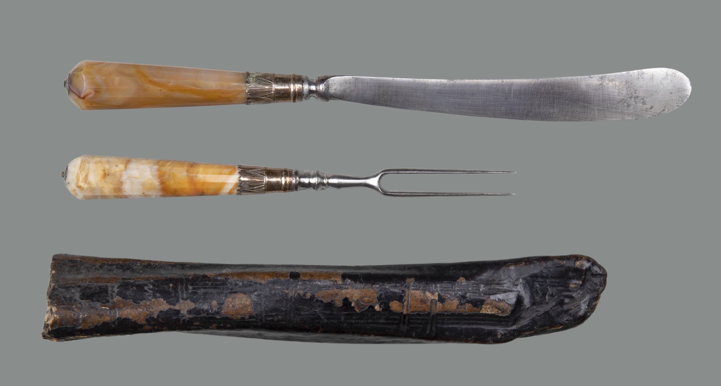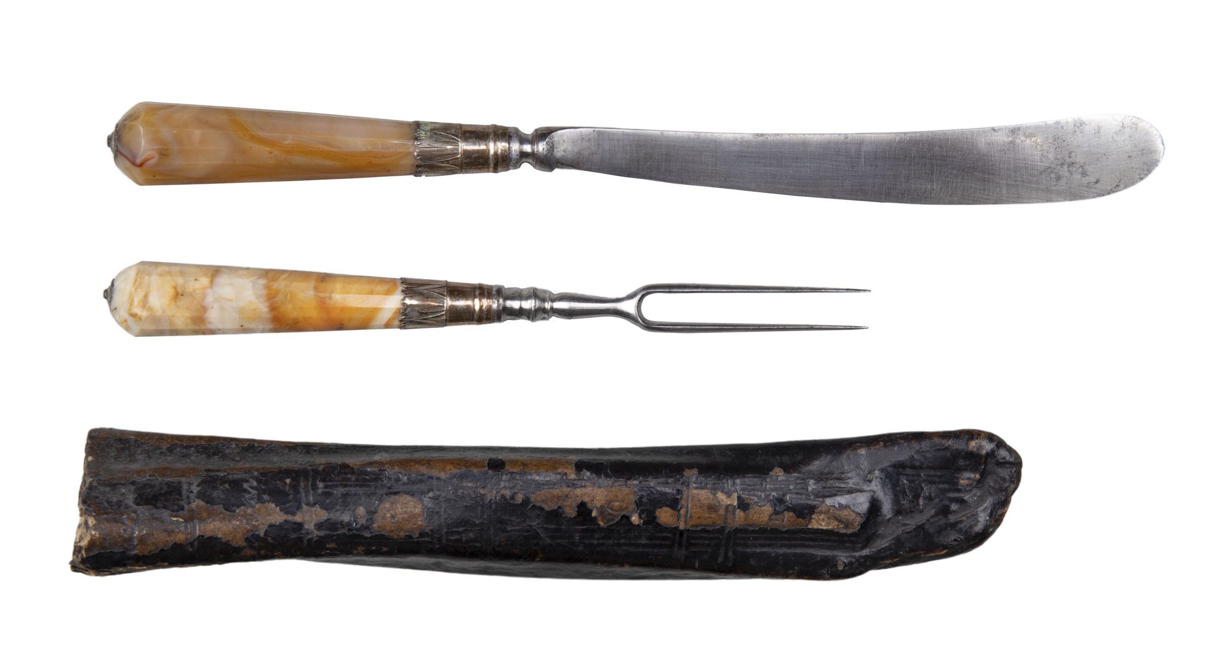 92.02 Fork: Two tines on long, moulded, baluster neck.