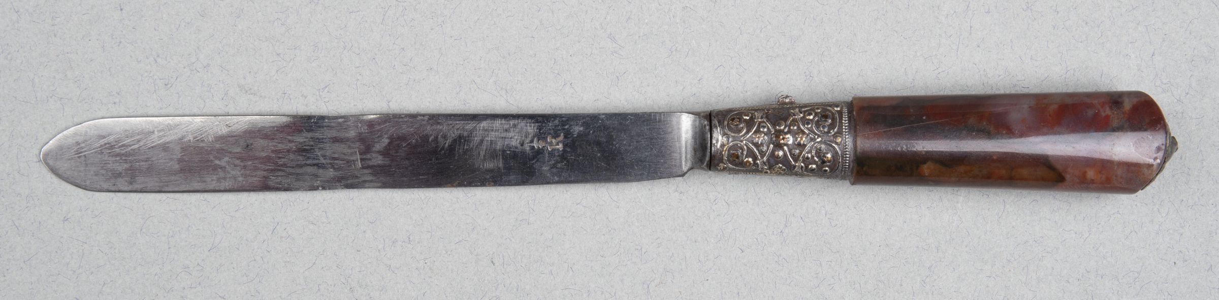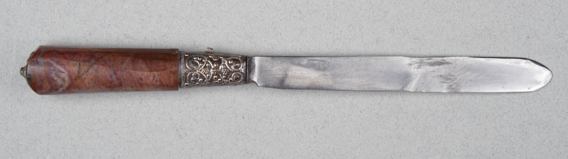 Handle of jasper with a silver cap. The iron shoulder encrusted with silver.