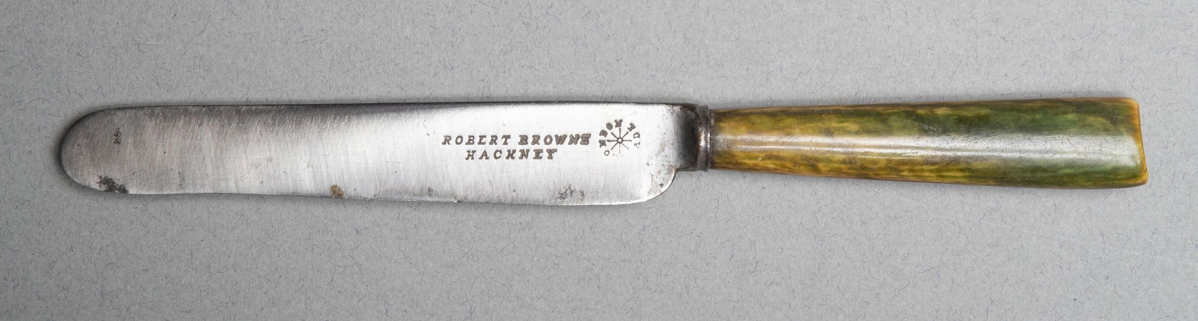 Robert Browne, Hackney and a hub with eight wheel spokes, surrounded by the word \"London Made\" in a circleOther Names and Numbers