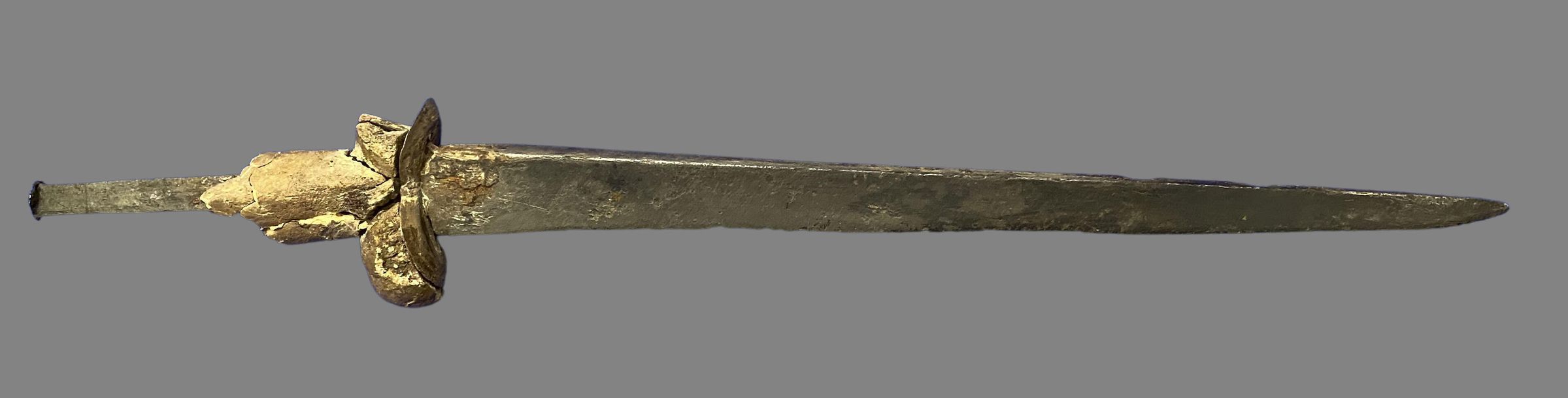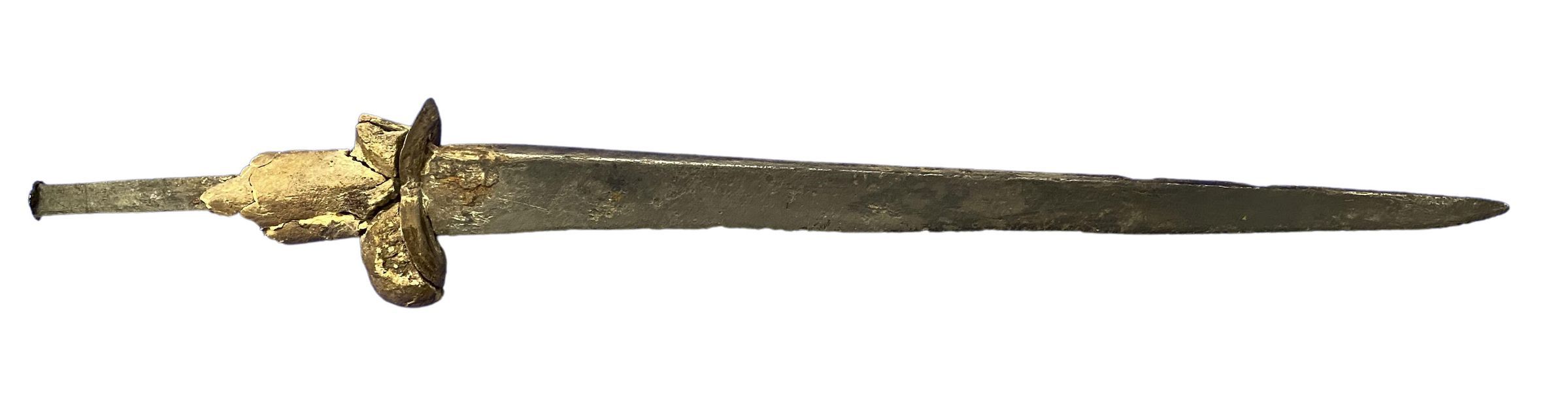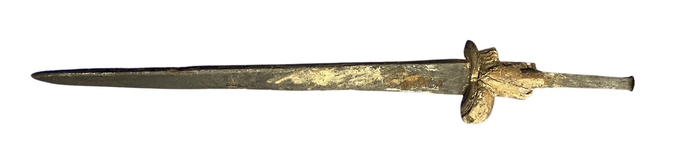 According to Wikipedia "A bollock dagger or ballock knife is a type of dagger with a distinctively shaped hilt, with two oval swellings at the guard resembling male testes ("bollocks"). The guard is often in one piece with the wooden grip, and reinforced on top with a shaped metal washer. The dagger was popular in Scandinavia, Flanders, Wales, Scotland and England between the 13th and 18th centuries, in particular the Tudor period. Within Britain the bollock dagger was commonly carried, including by Border Reivers, as a backup for the lance and the sword. Many such weapons were found aboard the wreck of the Mary Rose. The bollock dagger is the predecessor to the Scottish dirk.