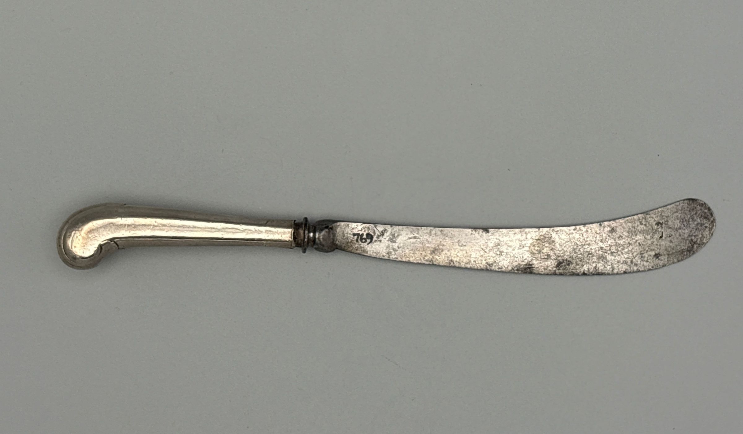 Possible game knife, scimitar blade D mark, London, solid silver handleCollection