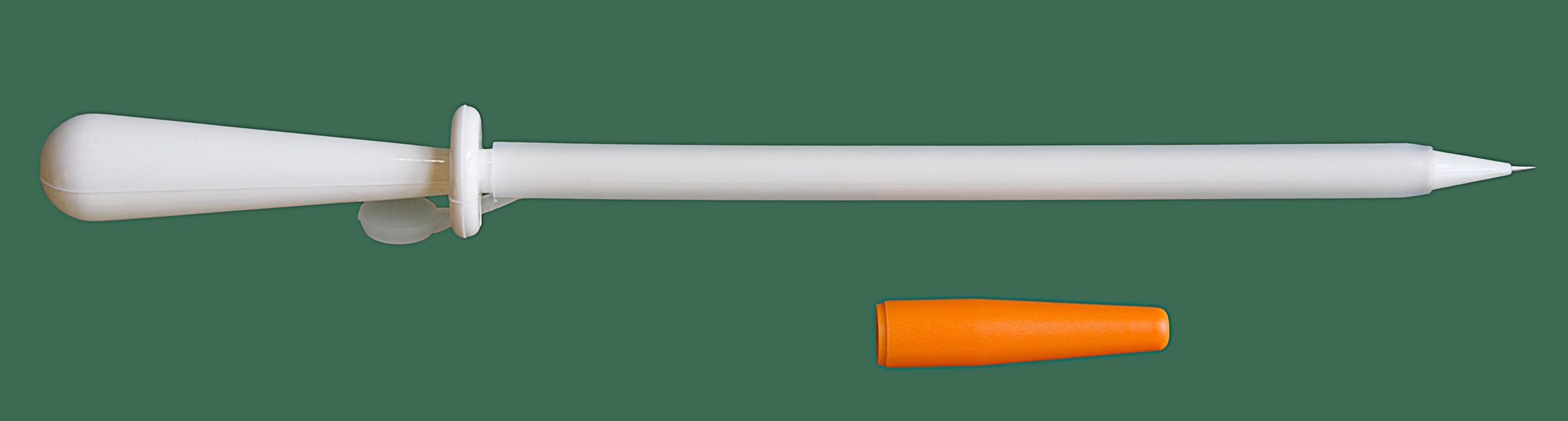2003 Supra pubic catheter introducer; white plastic with pointed steel tip and orange capCollection