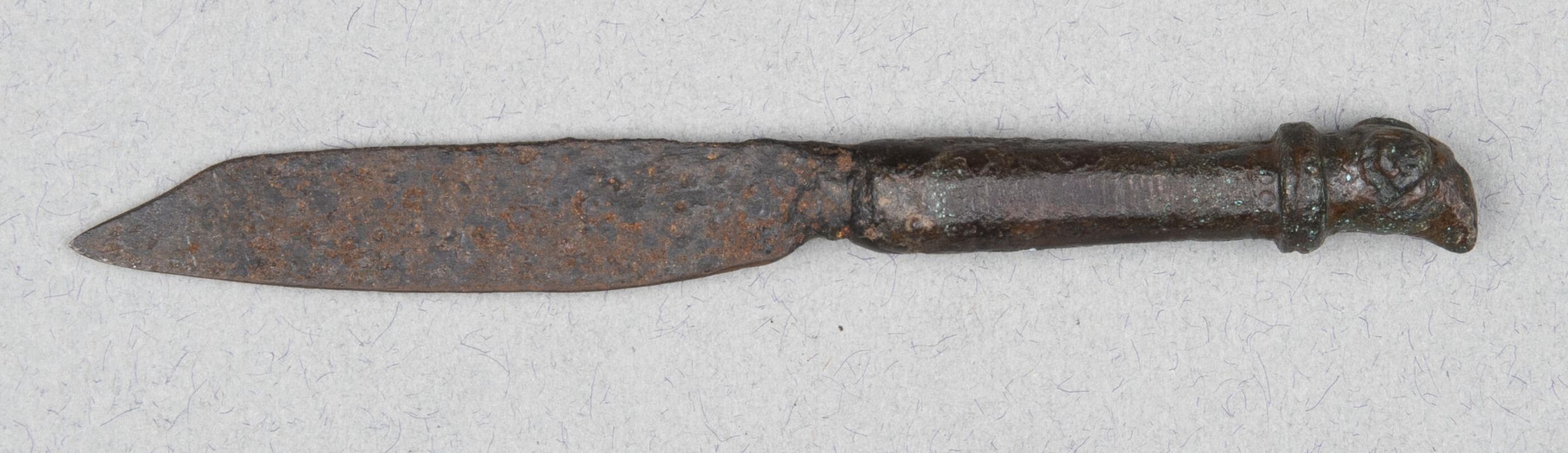 Blade and haft of iron, terminal of handle in the shape of a ram's head.Collection