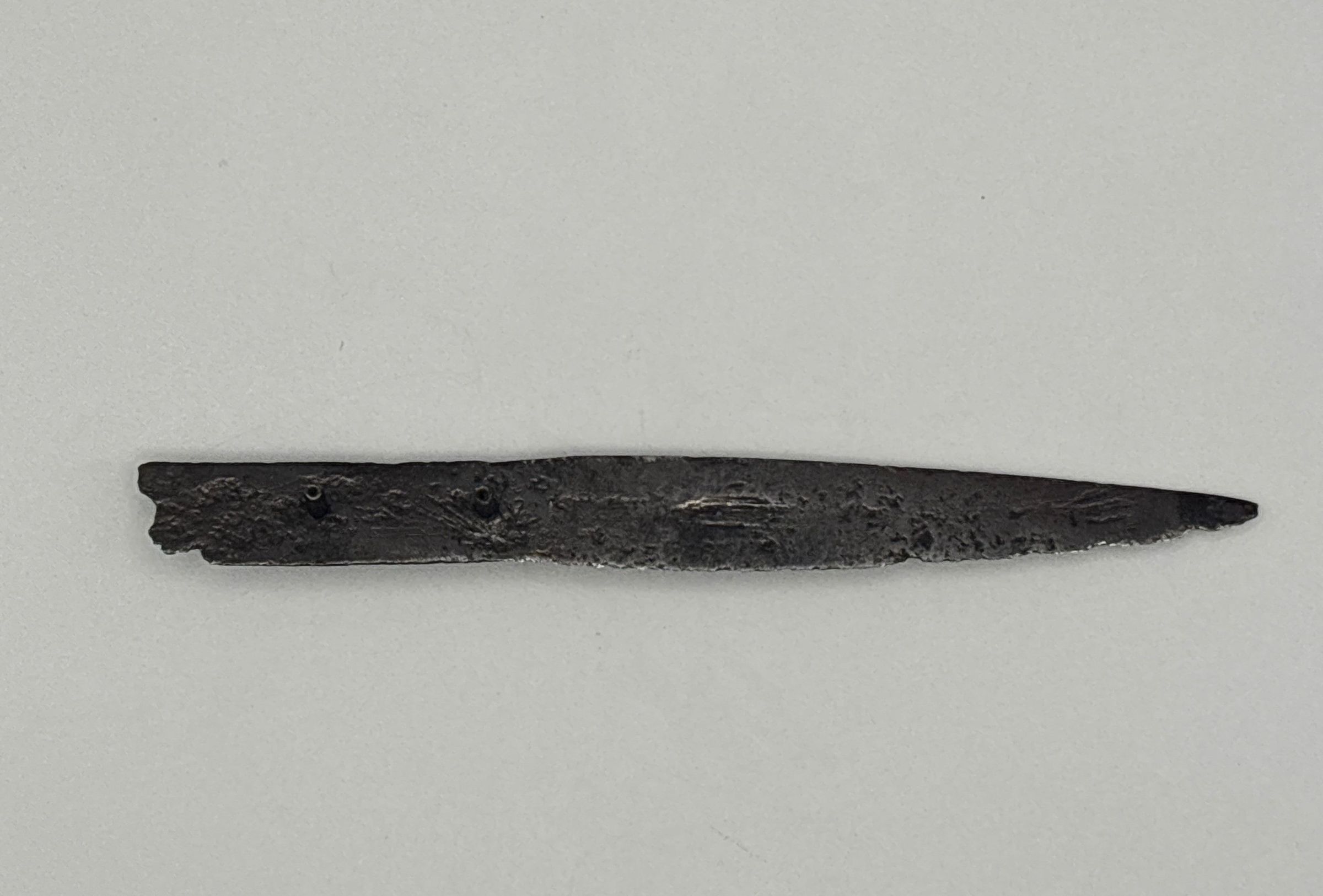 Knife with cutler's mark; rivet of tubular copper, Fe alloy blade and Tang, Cu alloy pinCollection