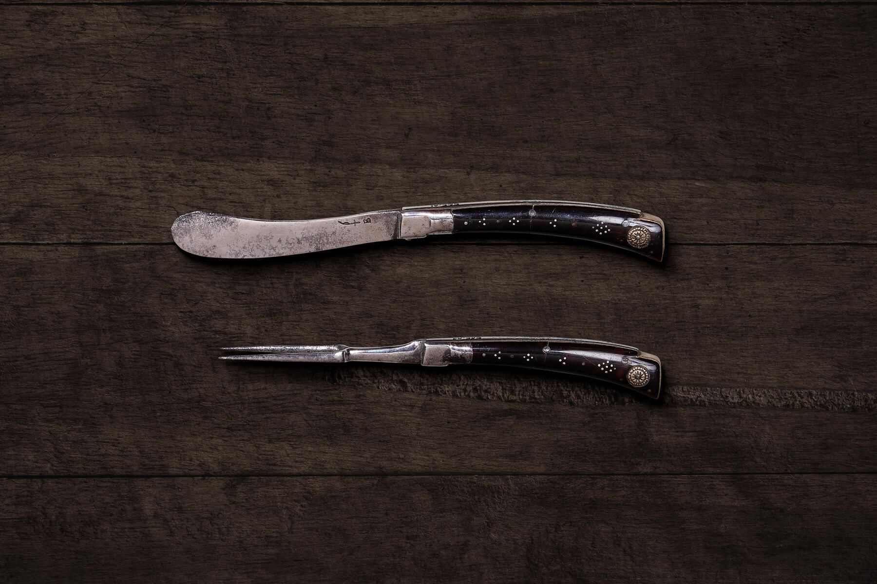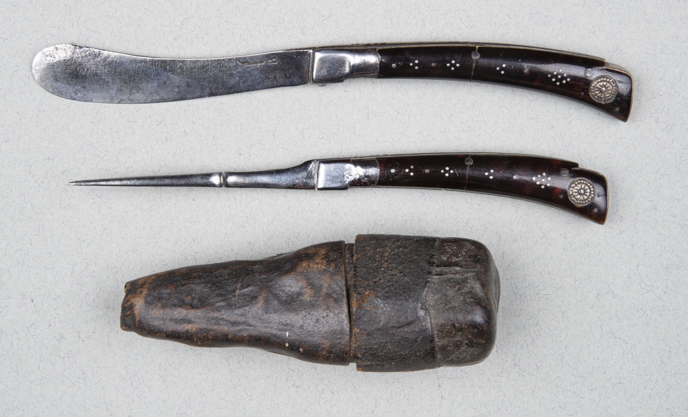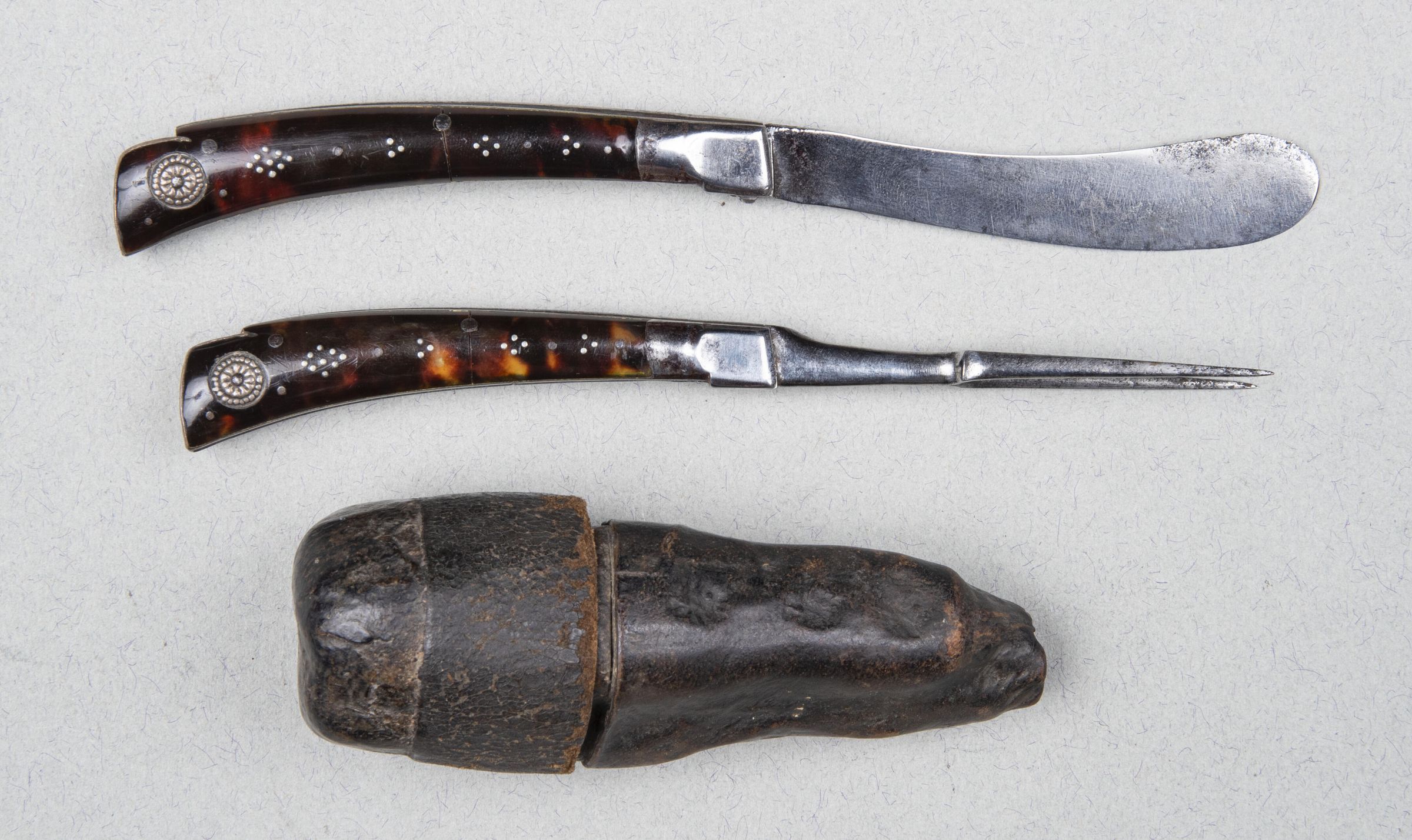 Handles: Tortoiseshell inlaid with silver with shields of silver at the extremities.