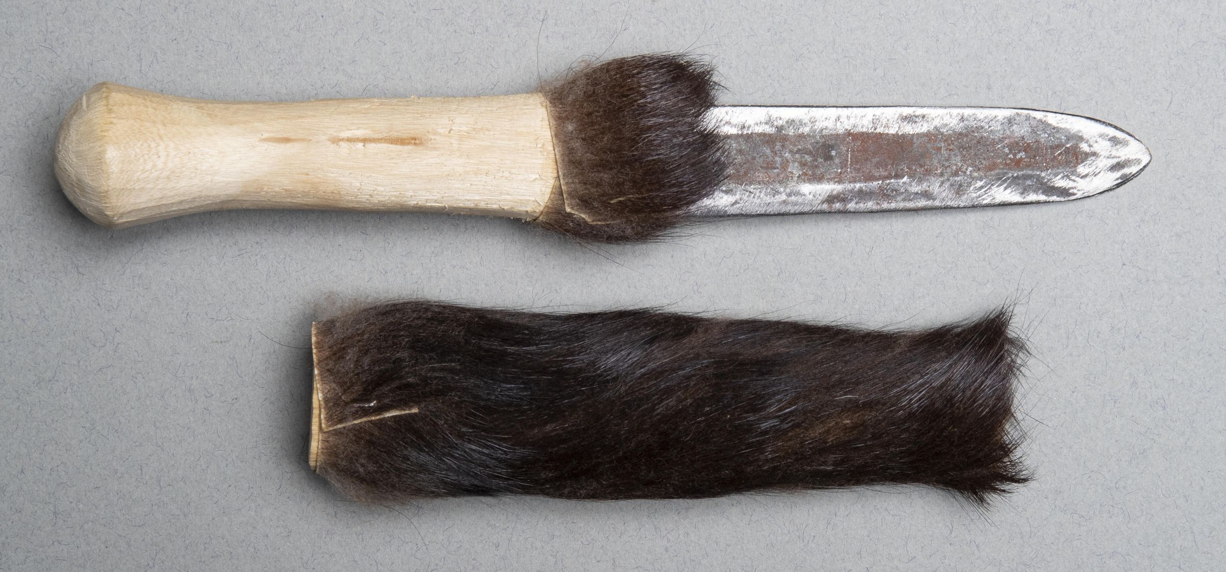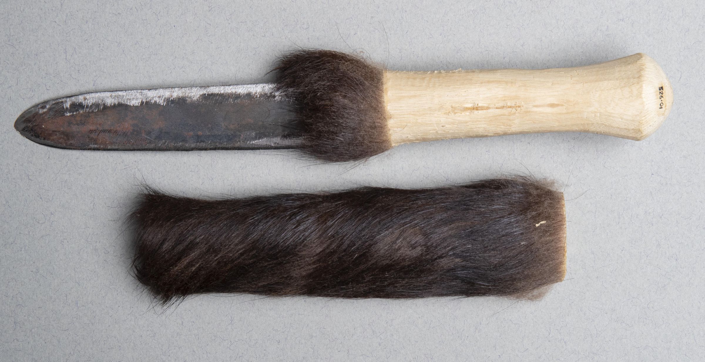 526.02 Sheath: Wood covered in animal fur which continues on to the handle of the knife.Collection