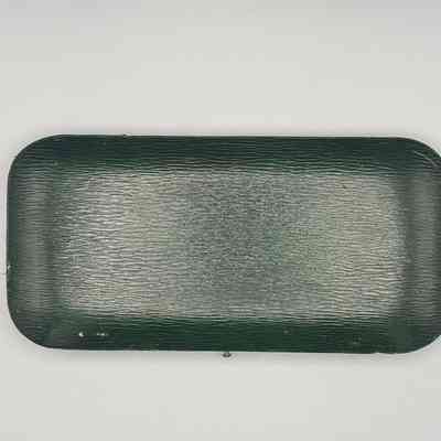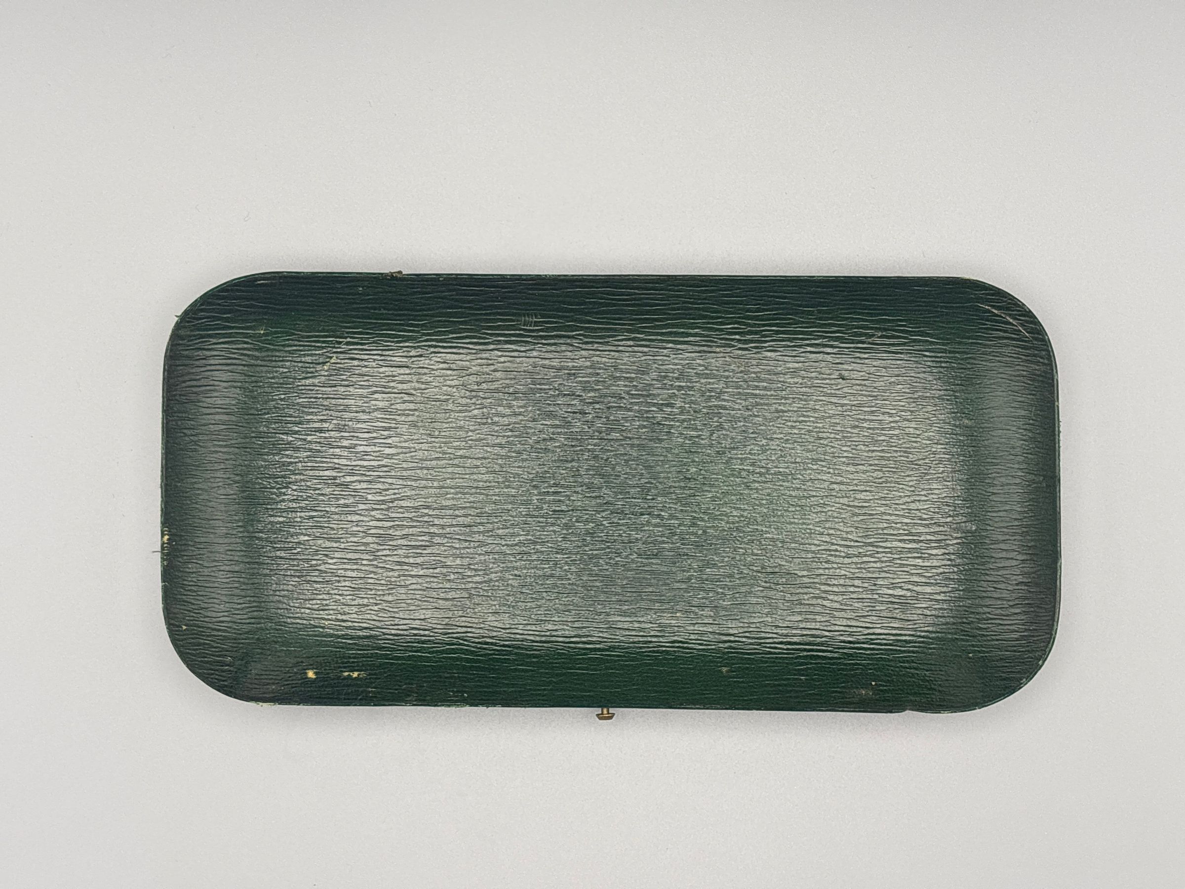 280.04 Case: Wood covered in black leather, oblong with rounded corners and a hinged lid; recessed for each piece and lined with green velvet; lid lined with white silk.Collection