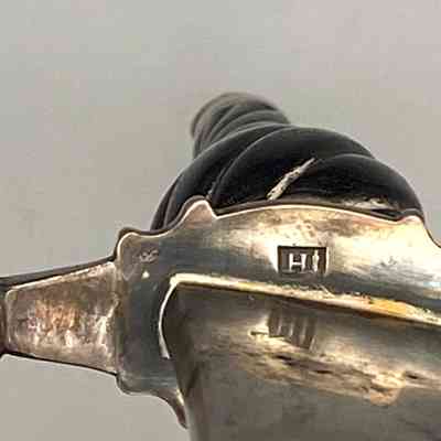 This bayonet is attributed to John Harrison, London, based on the hilt maker’s mark and stylistic parallels to documented late-17th/early-18th-century luxury plug bayonets made in London workshops. Harrison is recorded in period London cutler and silversmith directories as a maker active around the turn of the 18th century with initials appearing on weapon furniture of similar quality.