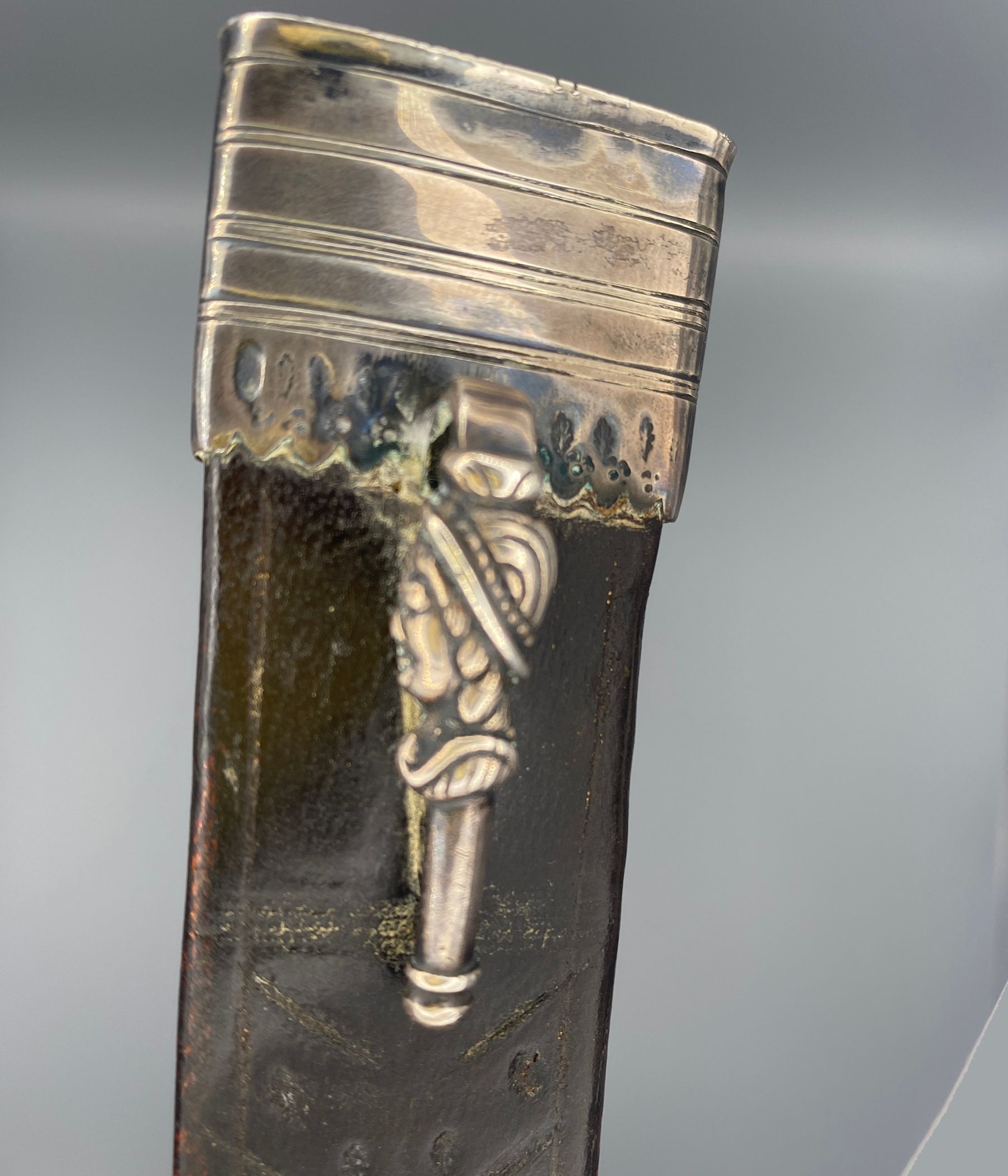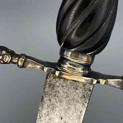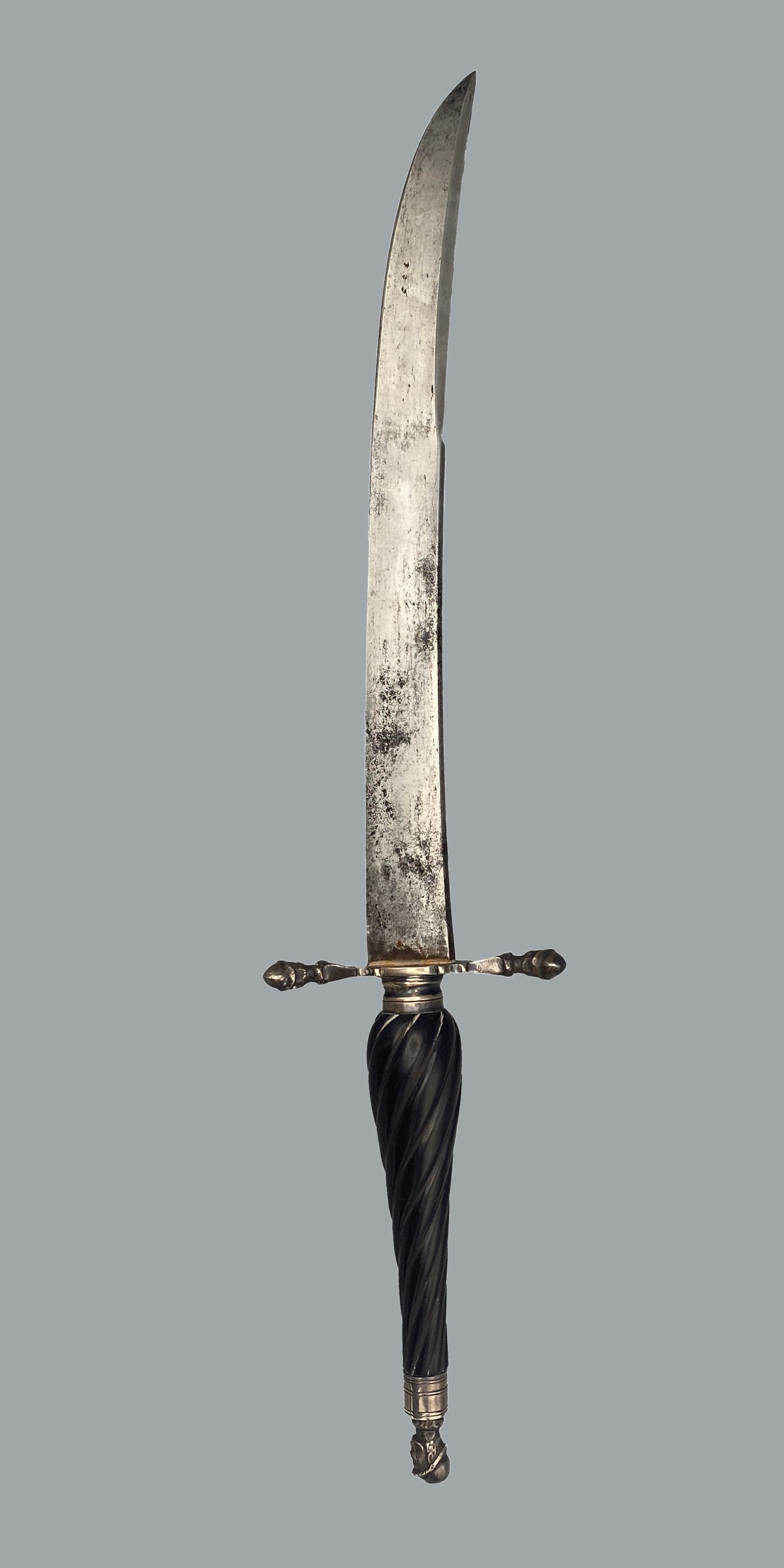 Plug bayonets were first adopted into British service in the late 17th century and became common among officers and gentlemen before being largely superseded by socket bayonets by the first decades of the 18th century. Silver mounts and bespoke scabbard decoration indicate a private purchase, likely for an officer’s promenade, duelling, or hunting gear rather than standard infantry issue.Collection