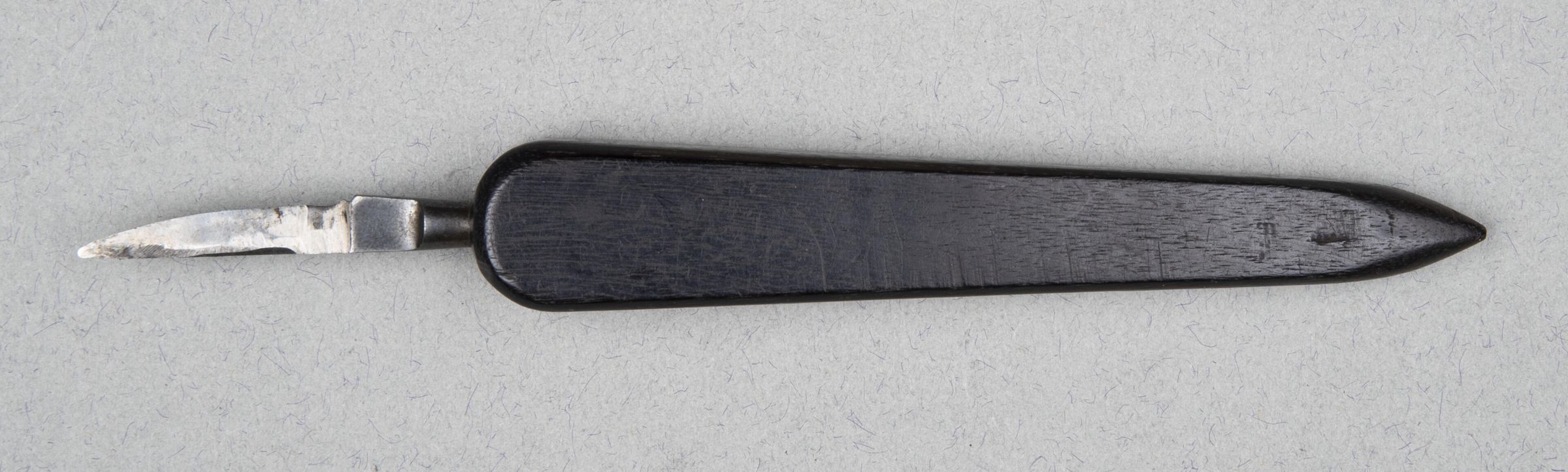 Single edged fixed steel blade. Ebony handle.Collection