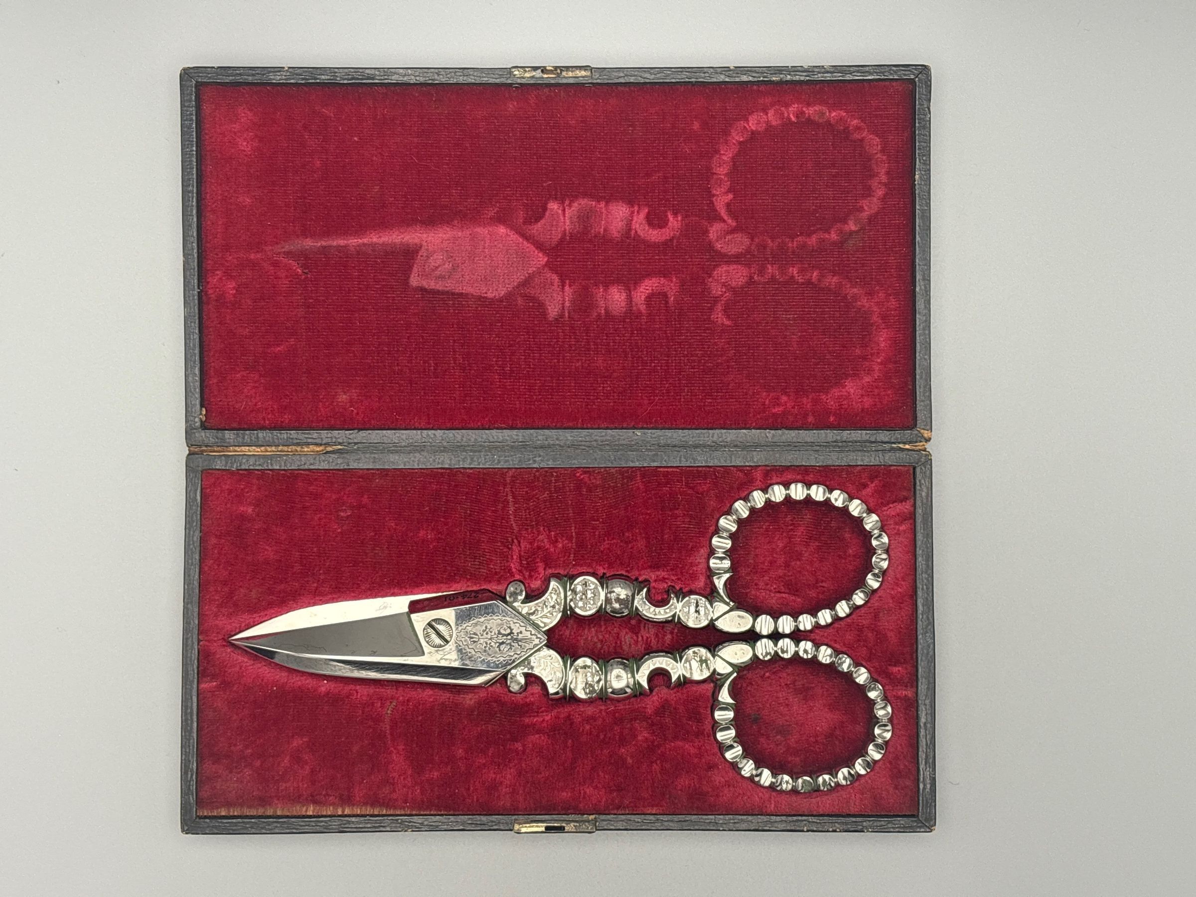 Handles made up of beads of metal, the neck with floral and foliate decoration.Collection
