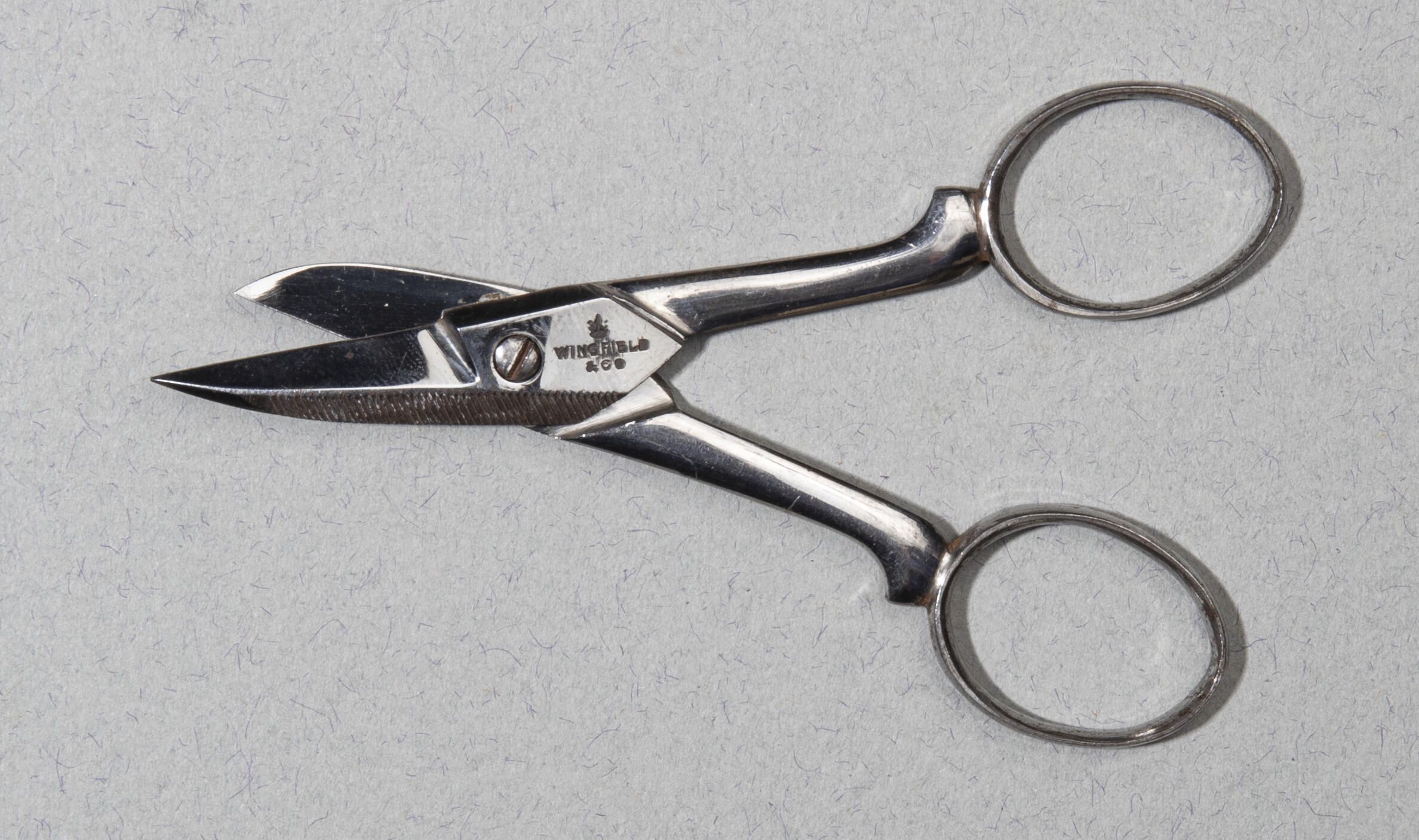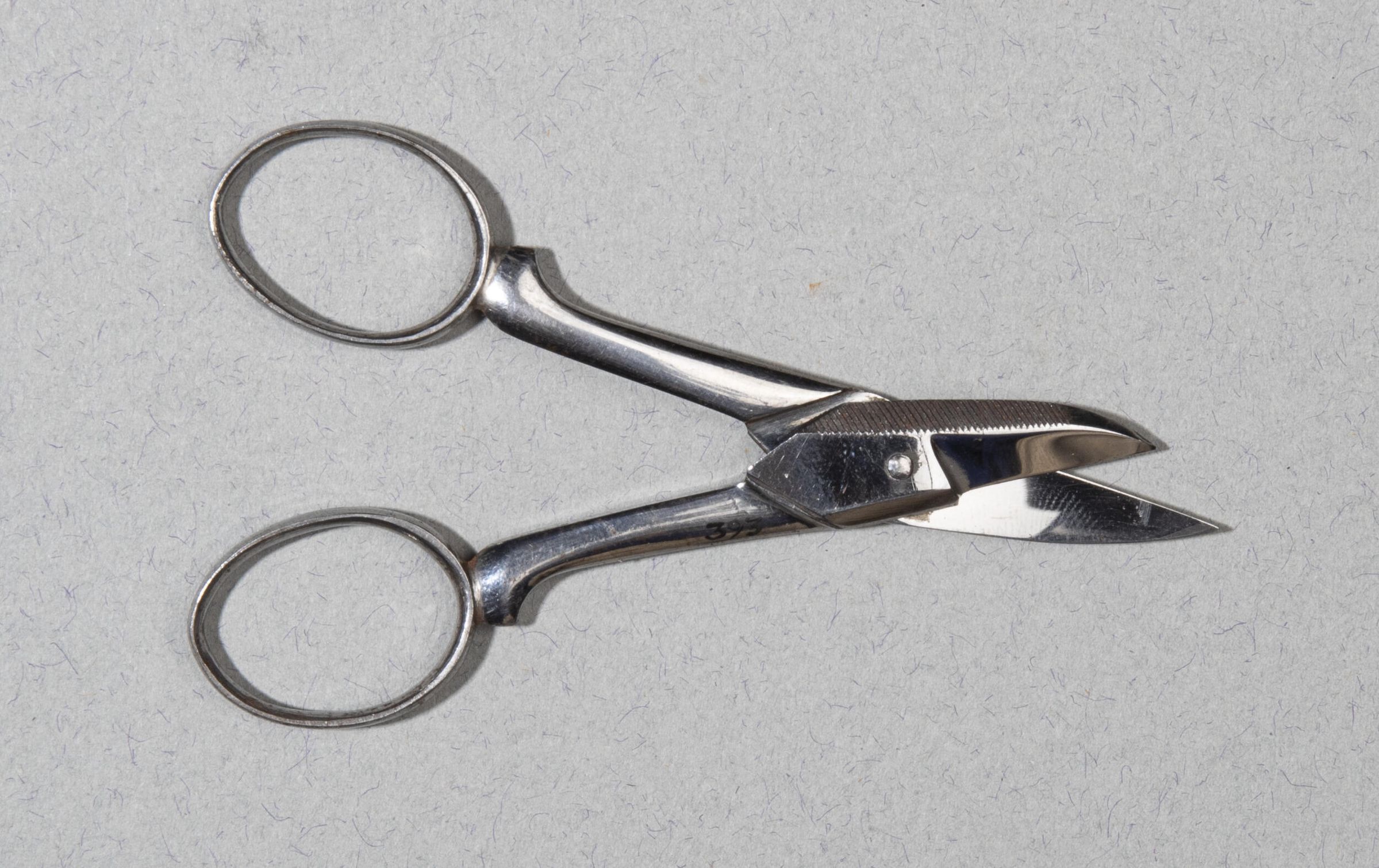 Nail scissors. Bows do not meet. One blade shorter than the other. Both have files on the edges.Collection
