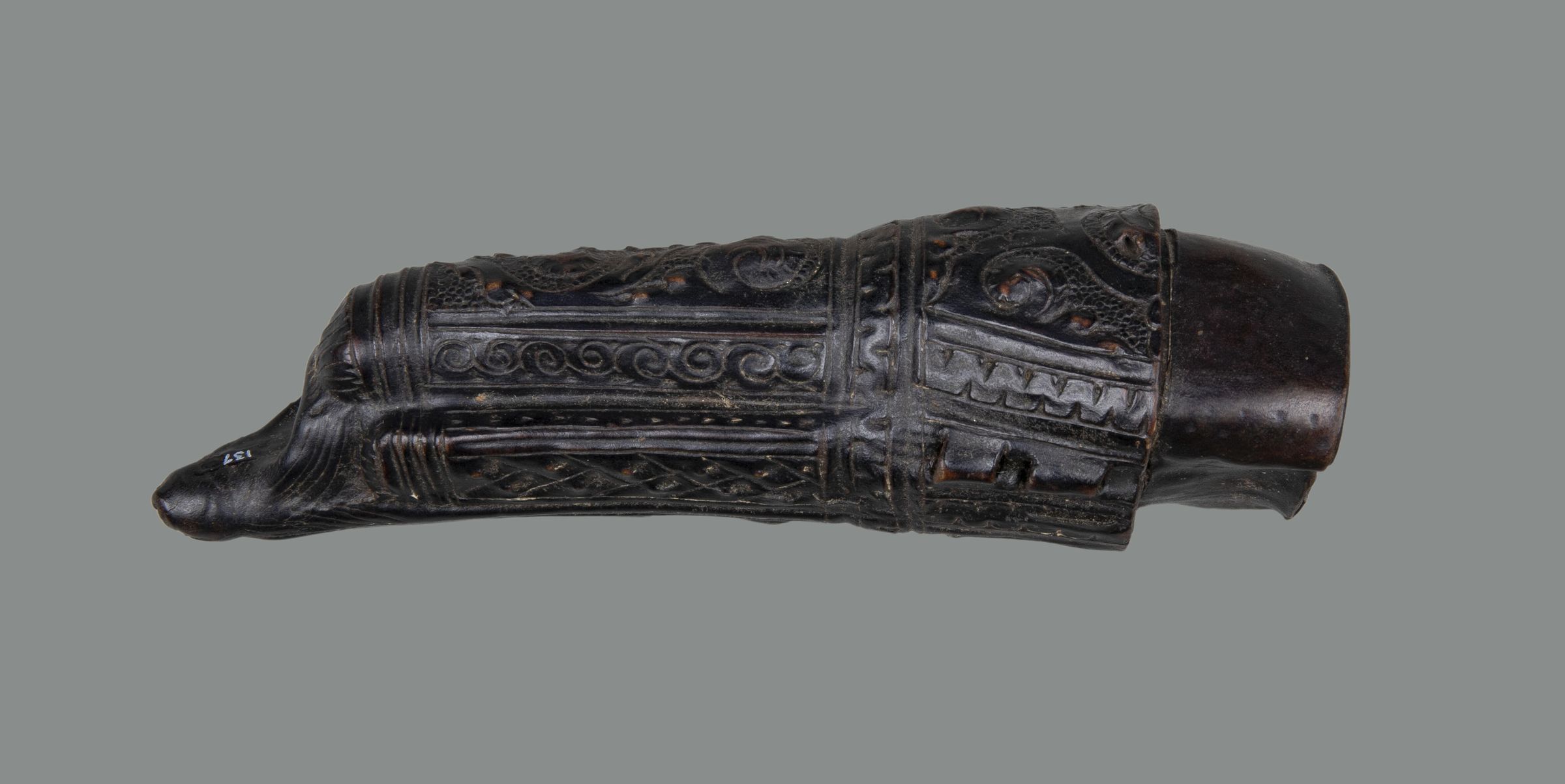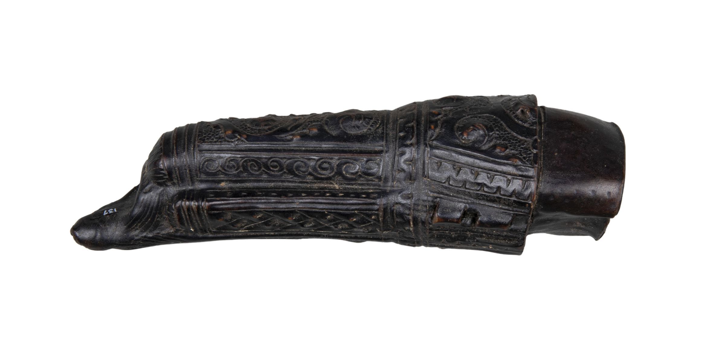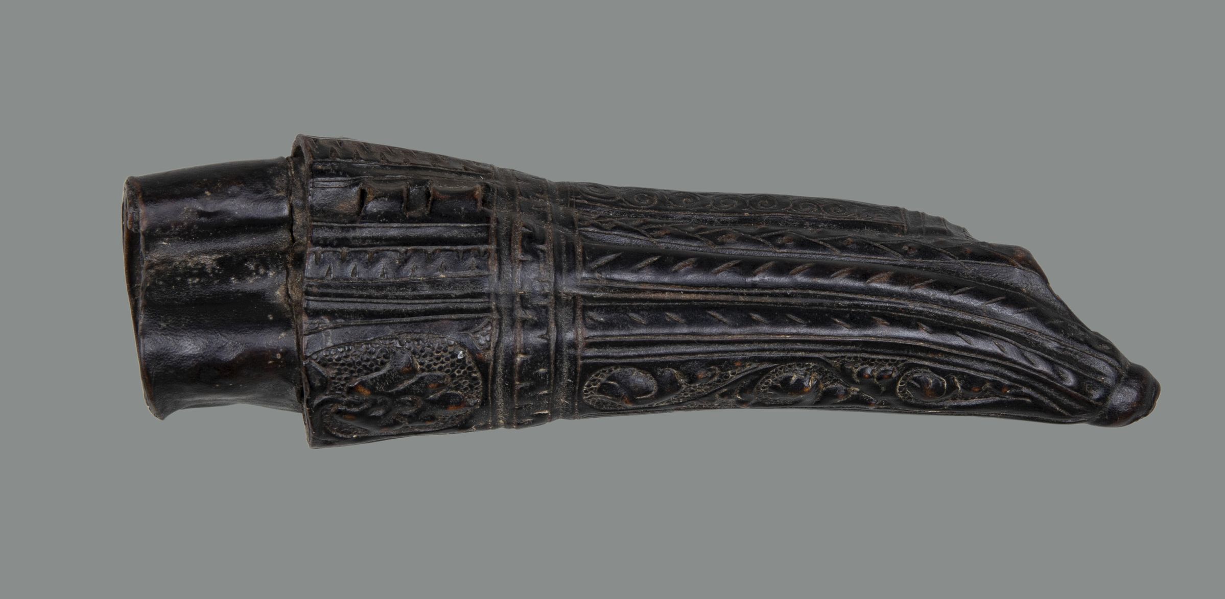 Sheath made of 'cuir boulli' or leather boiled to soften and shape it. Incised and embossed with leaves and scrollsCollection
