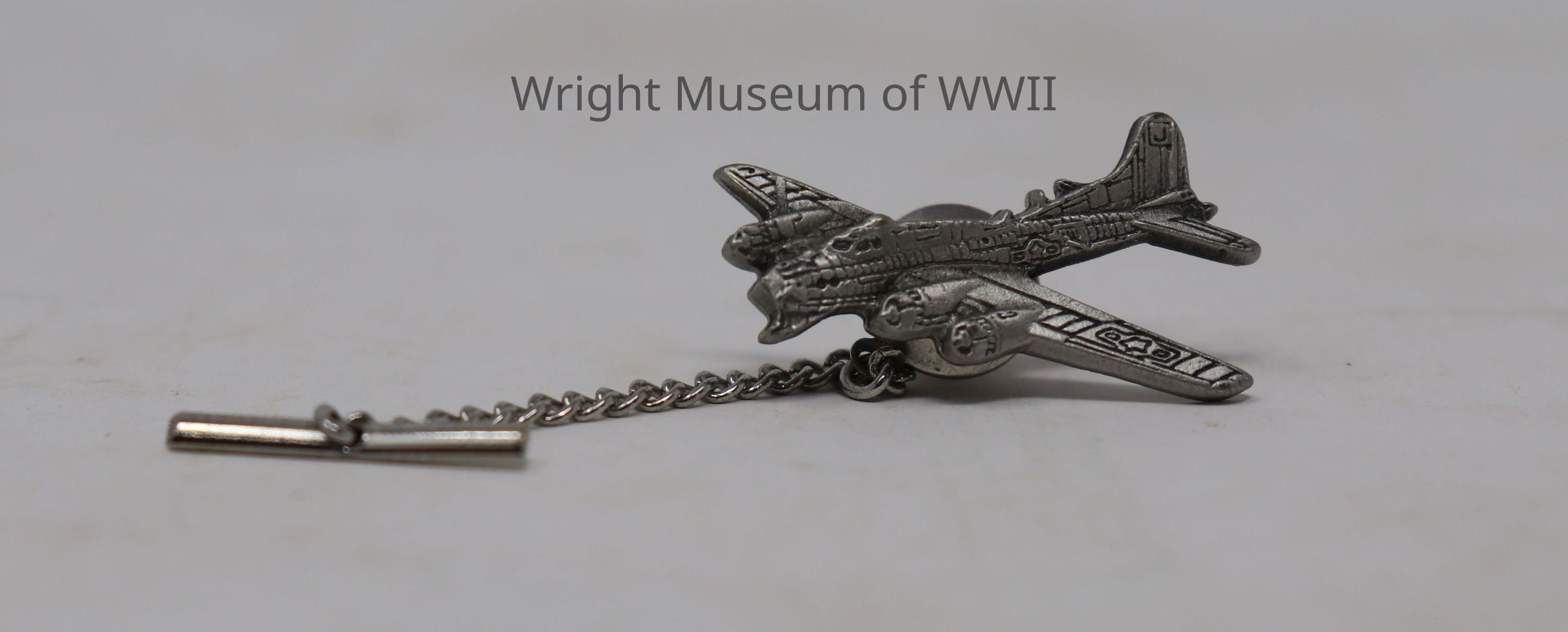 U.S. Boeing B-17 "Flying Fortress" U.S. Army Air Corps (USAAC) heavy bomber pin, silver. Includes a lapel chain and bar.