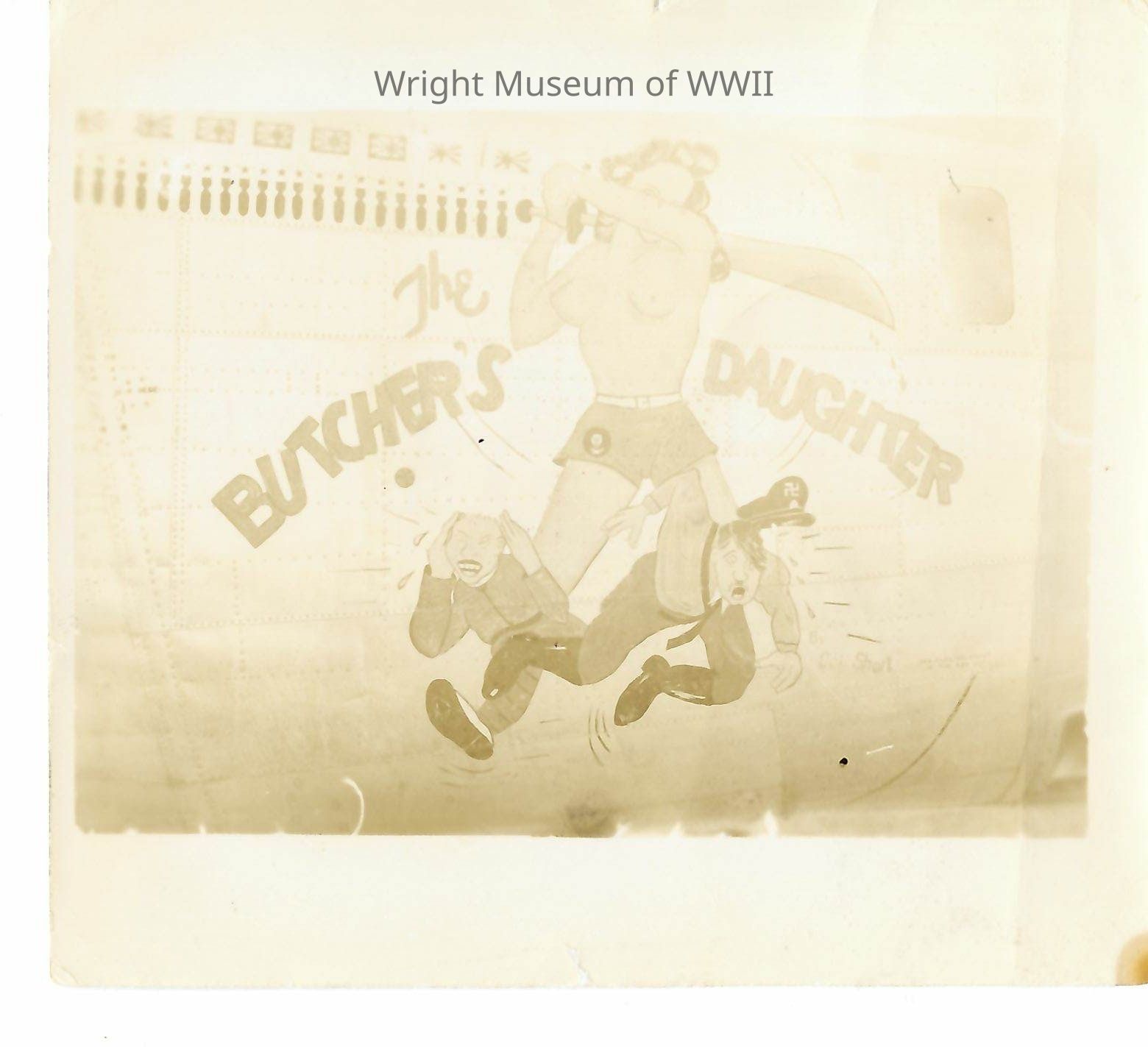 Original WWII nose art photograph of "The Butcher's Daughter". Taken circa. 1941-45.