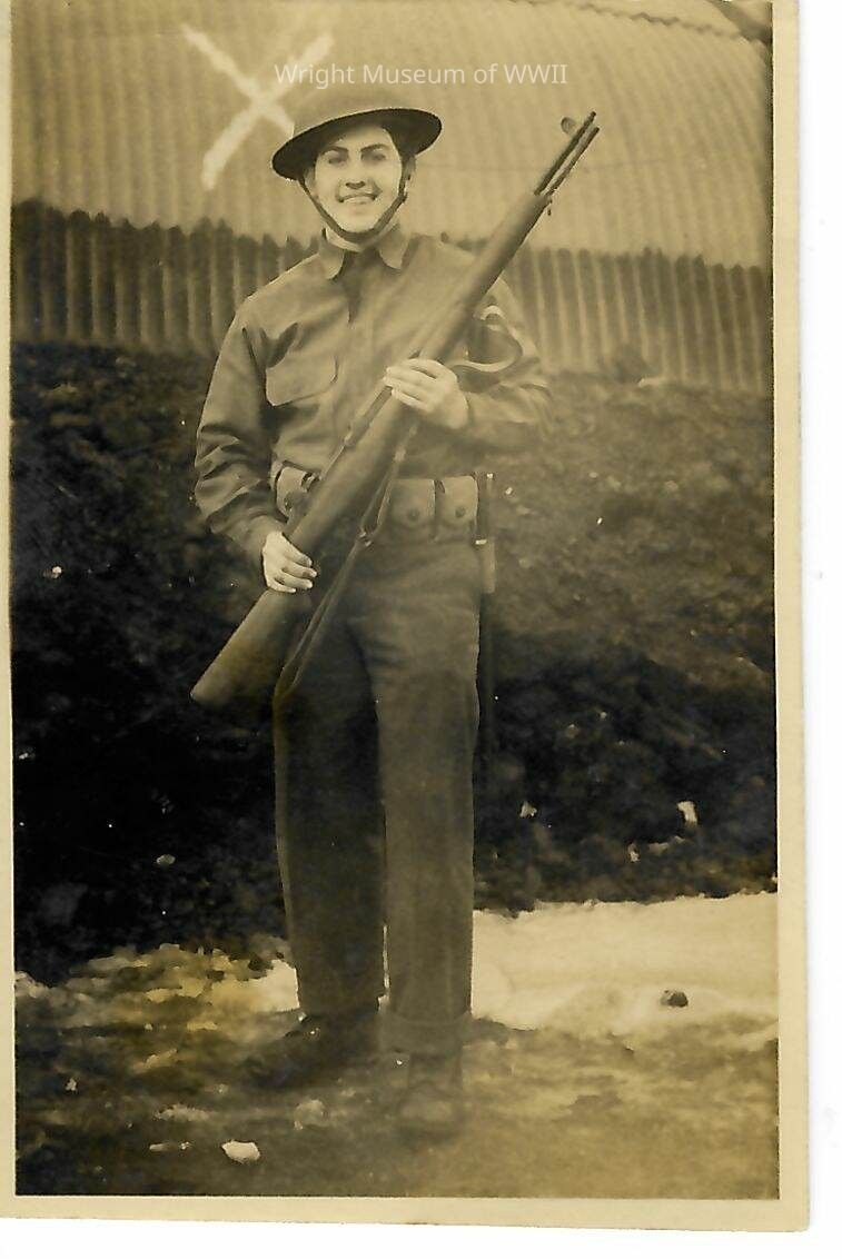 Original photograph from WWII. Taken in Iceland during 1941. Pvt. Joseph F. Sanders Jr. stands posing with his personal M1 Garand rifle.Update Date