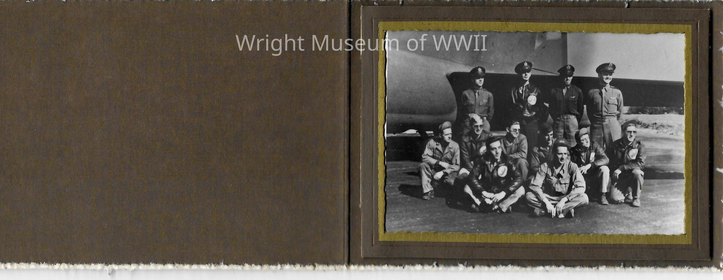 Original photograph. Aircrew in front of B-17 tail section. Edges of photobook are frayed. Taken circa. 1942-1945.