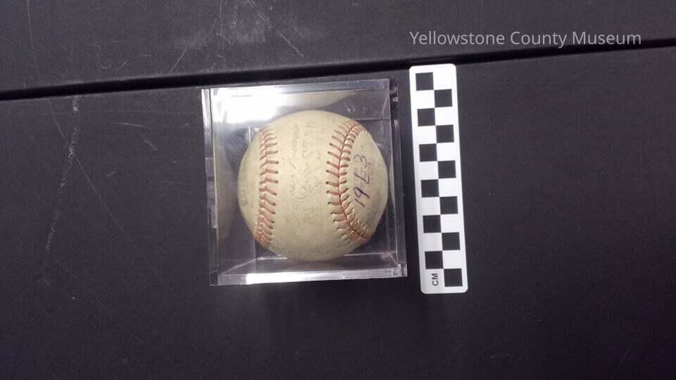 A typical white Wilson baseball with red laces. Ball has numerous signatures in pen, any of which are very faded. The most visible writing is "1963" written in purple ink, the most legible and least faded name is "Dick Vingle," also written in purple ink. Baseball is in a two-piece plastic case produced by BallQube, Inc.