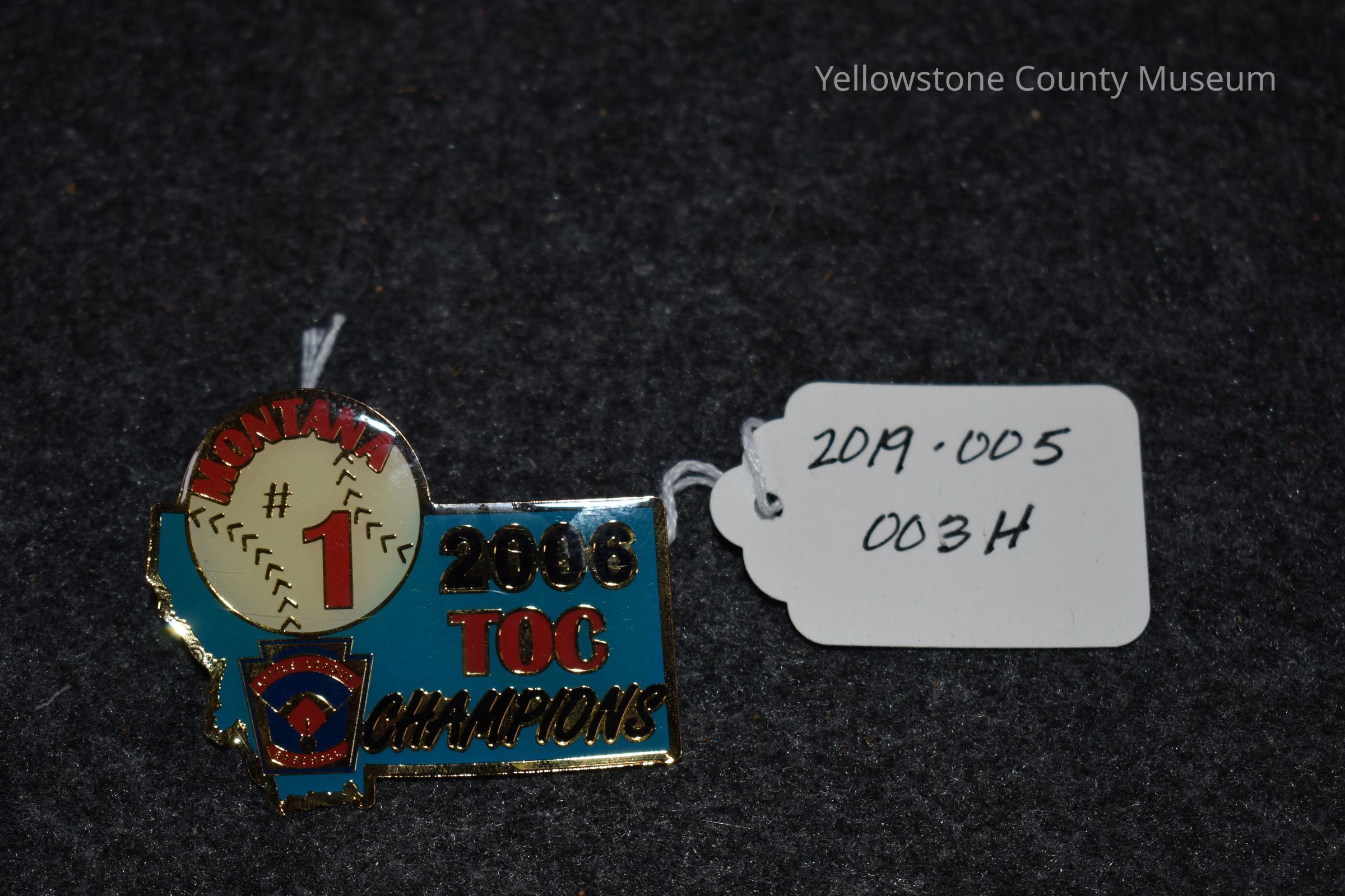 A cyan montana shaped pin with a baseball on in the upper lefthand corner. The baseball says "Montana 1" and the state portion says "2006 TOC Champions." In the bottom lefthand corner is a Little League Baseball Logo.Acquisition