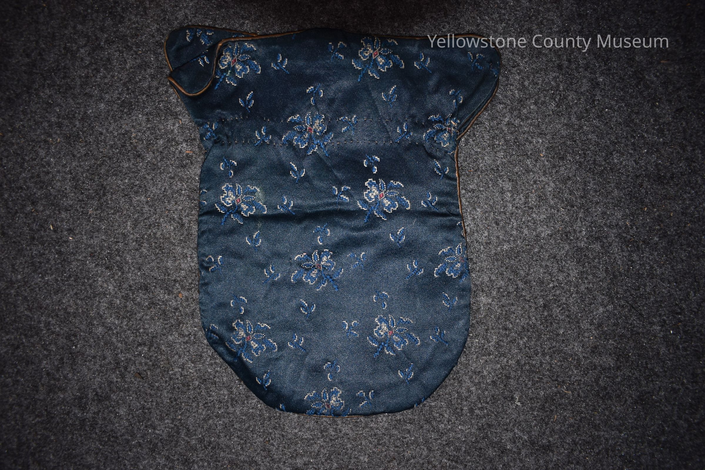 Handmade Japanese Silk Purse, floral print, dark green background, tan lining