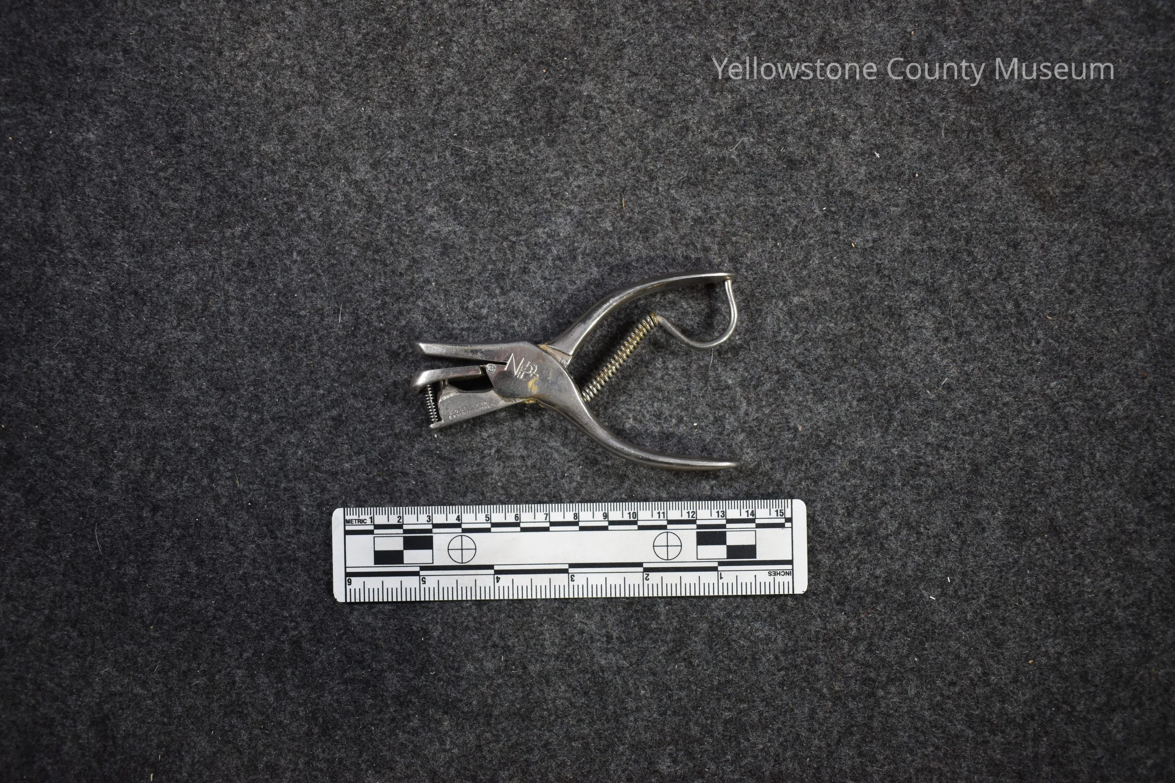 Northern Pacific Railway custom single hand-hand hole punch. Engraved on hole punch, "LO. CROCKER. E BRAINTREE. MASS." and "NP"Acquisition