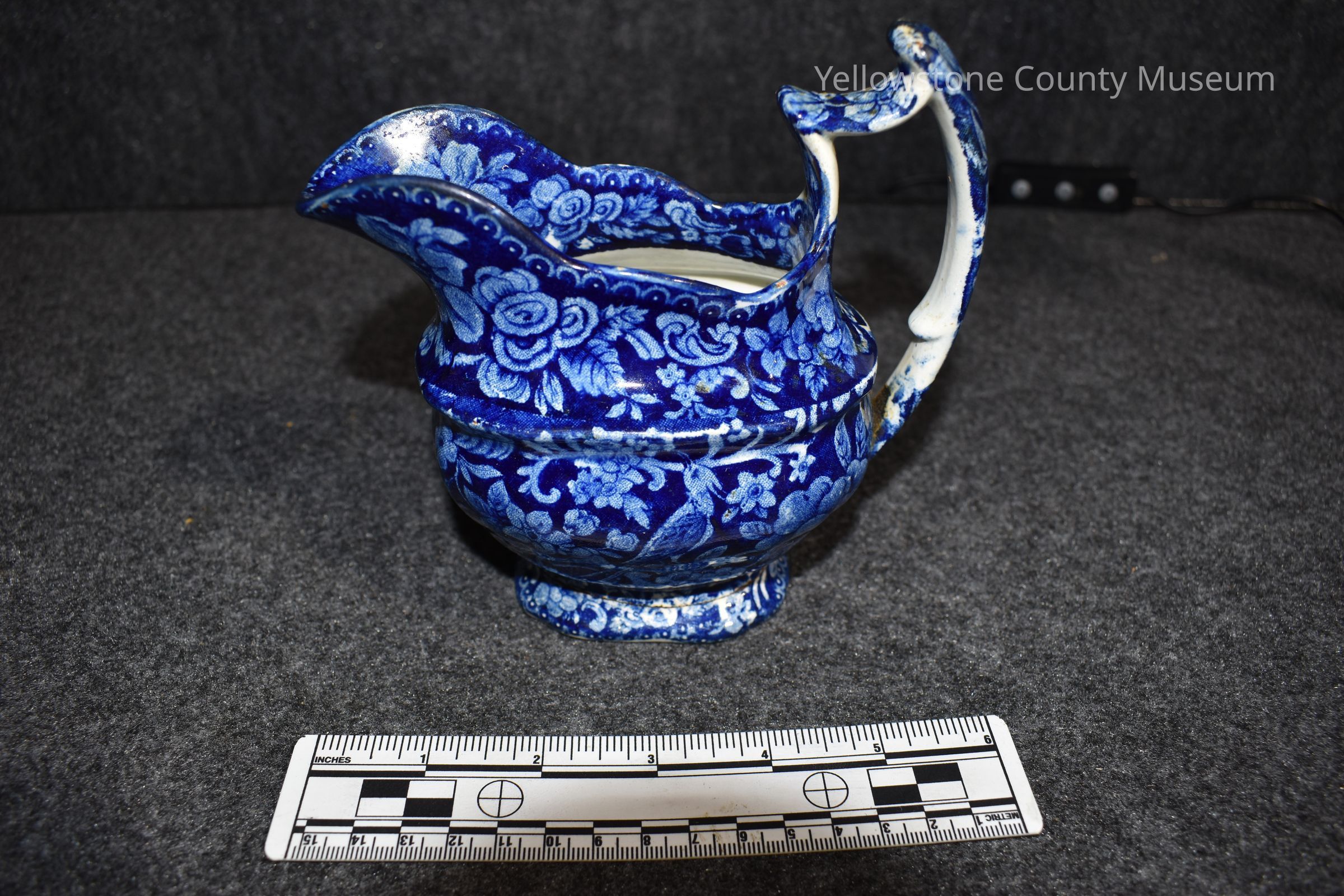 Description states: "Old Blue" creamer and sugar pieces from Mayer's Series bordered with vine leaves and trumpet flowers, are now extremely rare and valuable.Acquisition