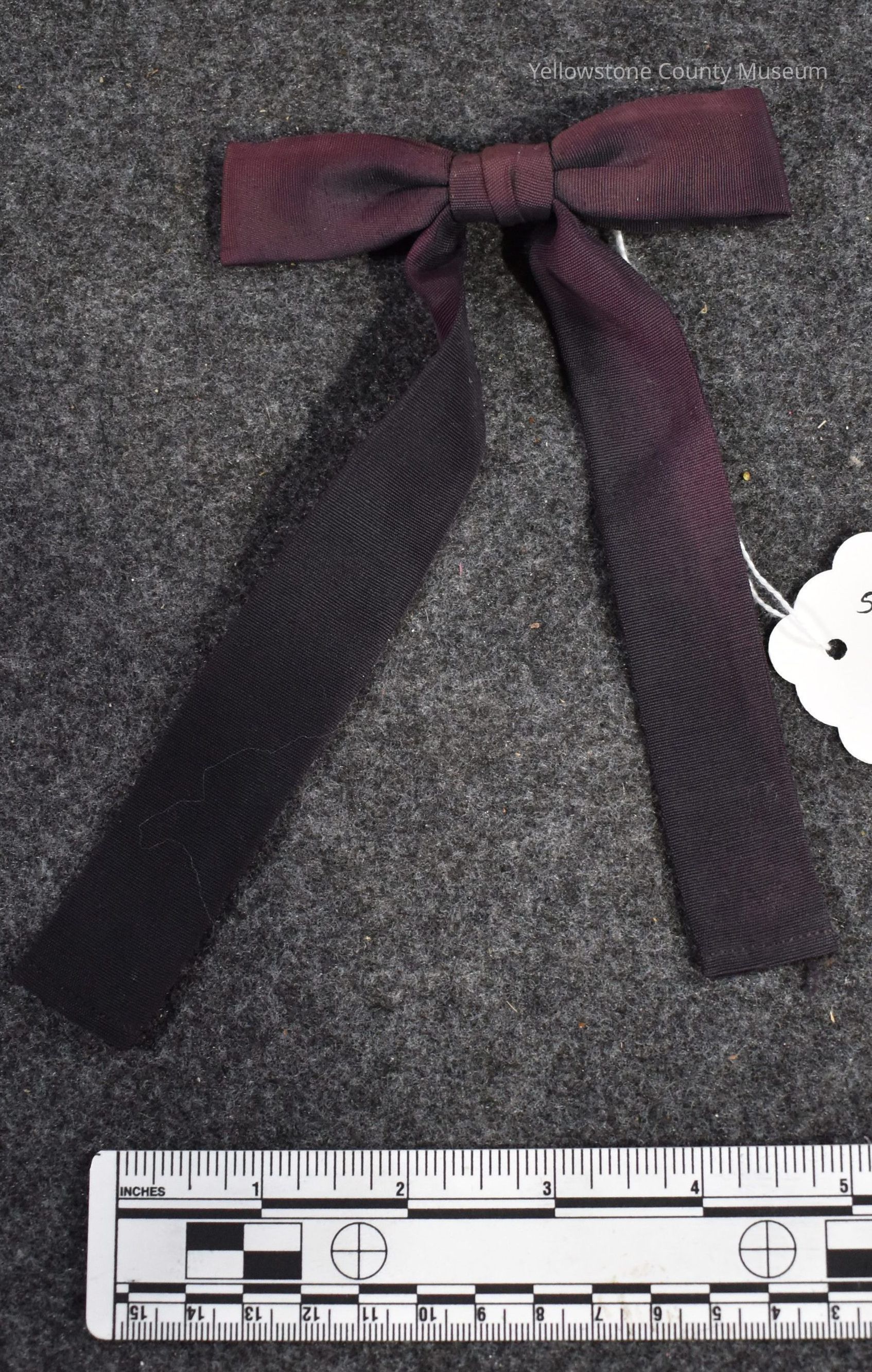 Clip on Bow (String) Tie, navy blue/faded, used in Dentist/Barber display in past (tag in photo has the wrong accession number)Acquisition