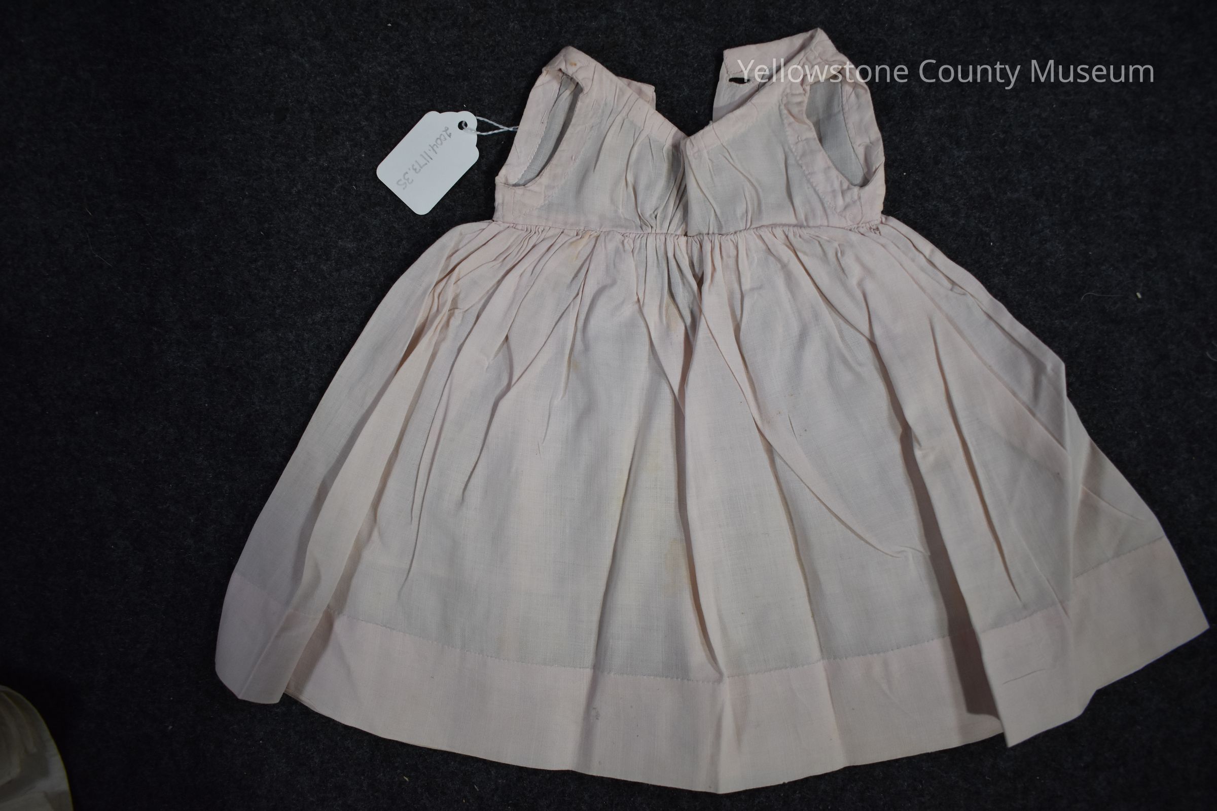 Doll's Dress; Handmade light pink, gathered above waist, straight neckline, Mother-of-pearl buttons.Acquisition