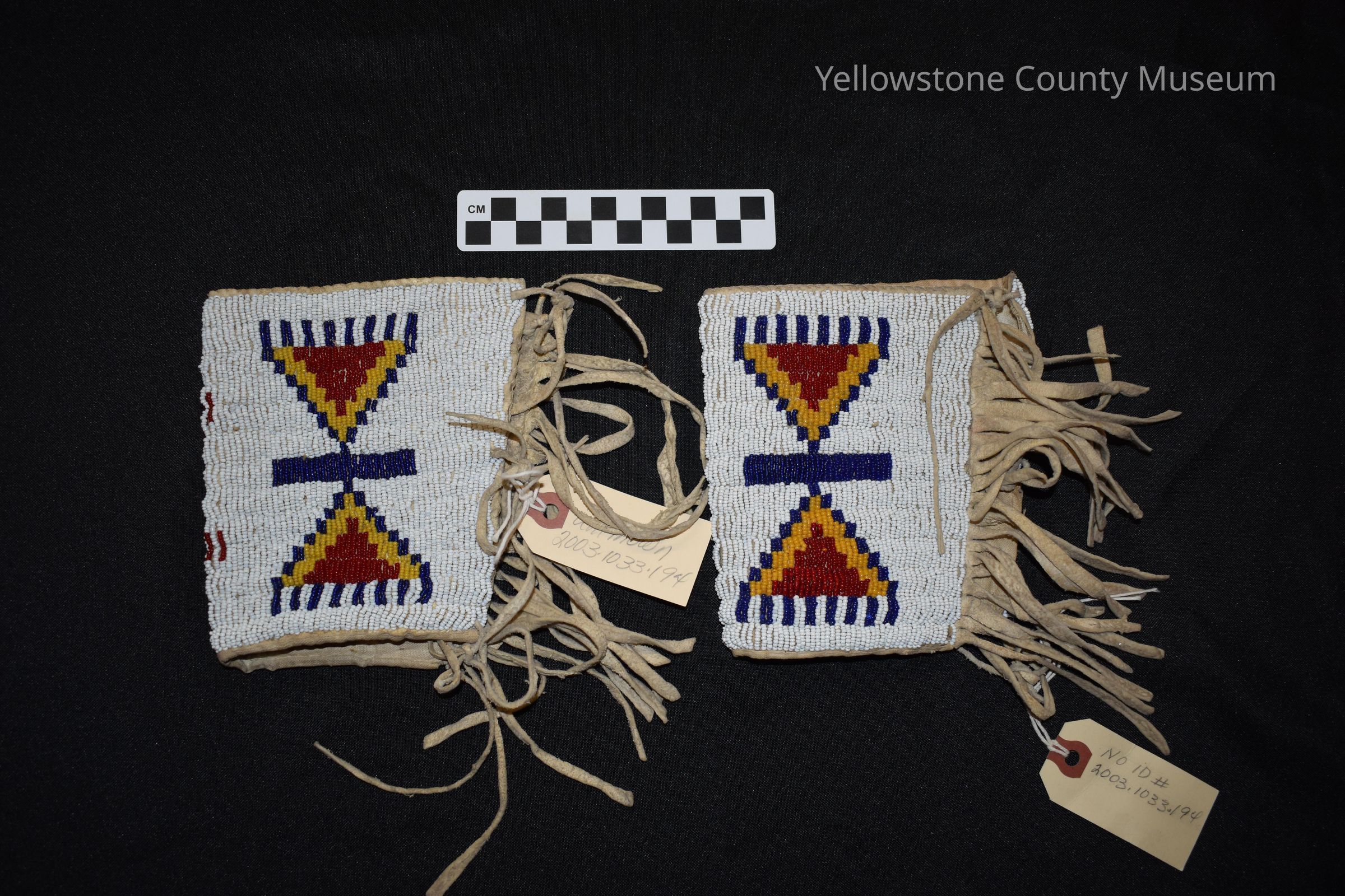 Sioux Cuffs; pair of beaded cuffs, design is geometric