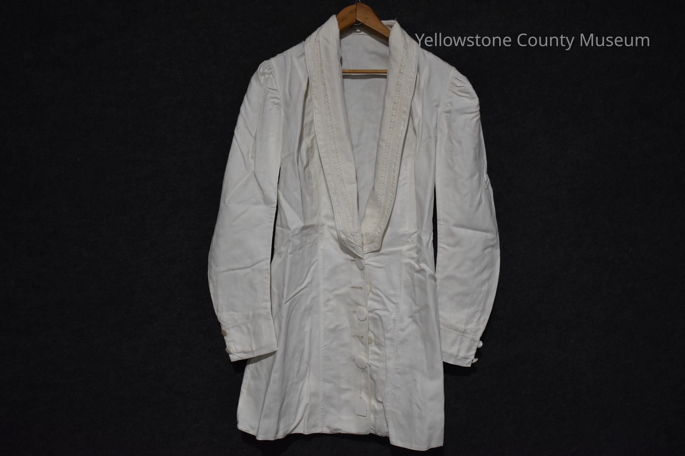 Linen Jacket. Ribbon trim on Lapels. 5 large white buttons