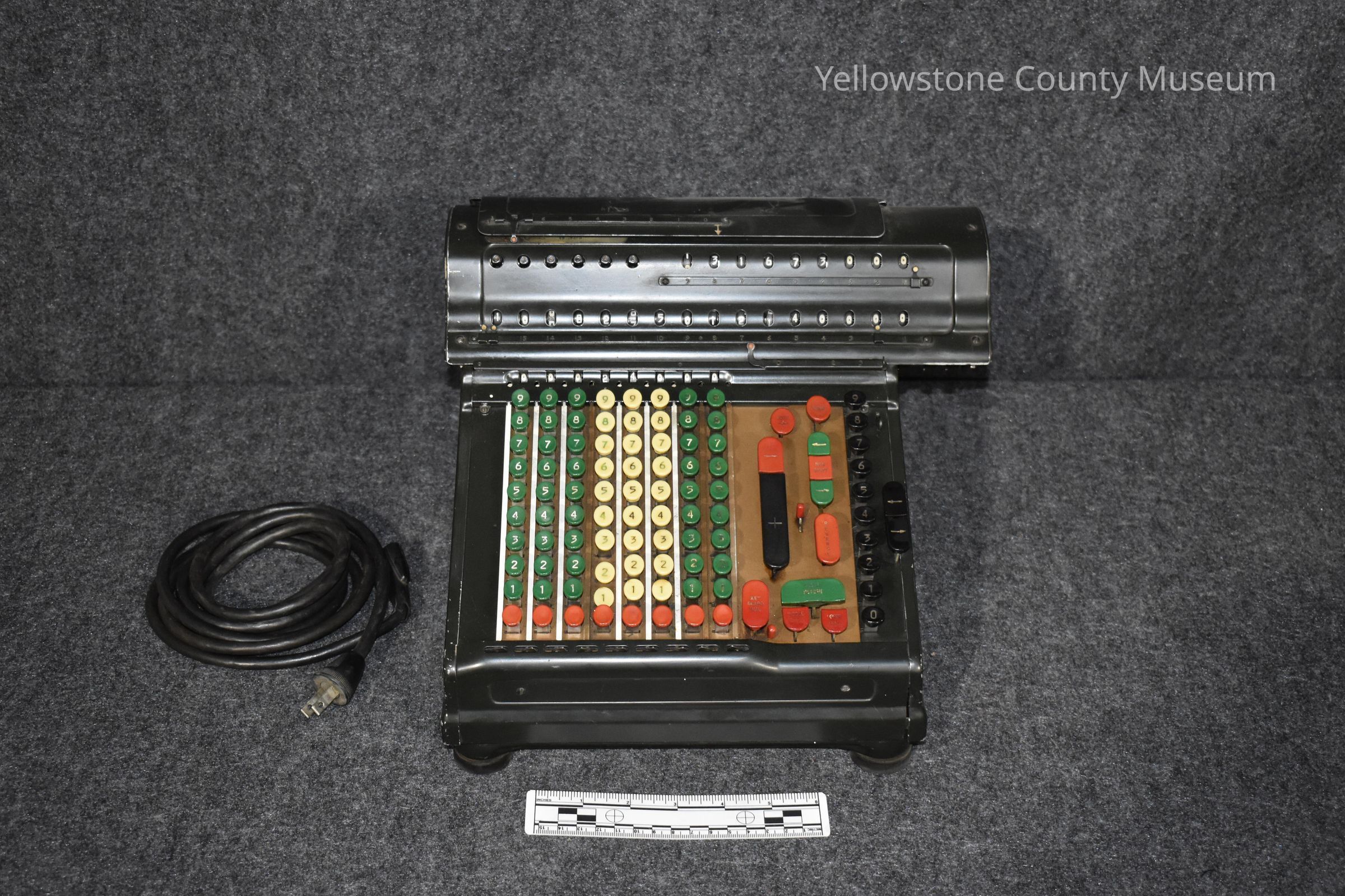 This electric calculator was one of the first used at A & I Distributors, Billings, MT in the 1940's. It is in working condition.Acquisition
