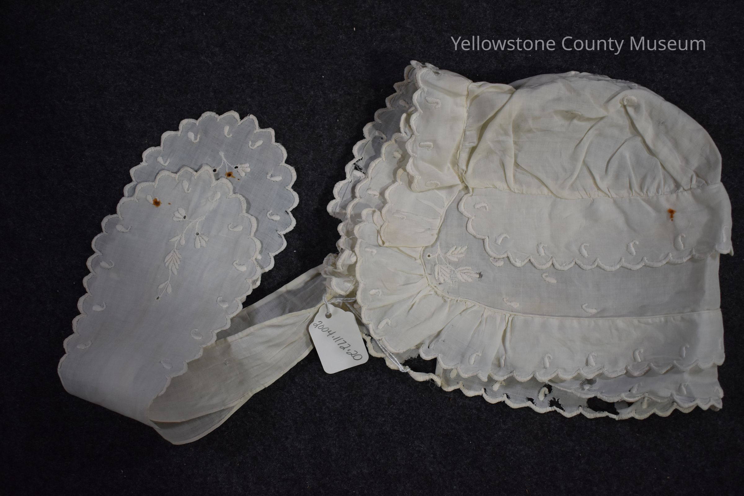 Woman's Nightcap, 1854. Linen with 3 ruffles & long ties