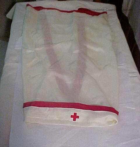 1) Red Cross Nurse Headgear, WW I Nurse; scarf that is pinned to hair