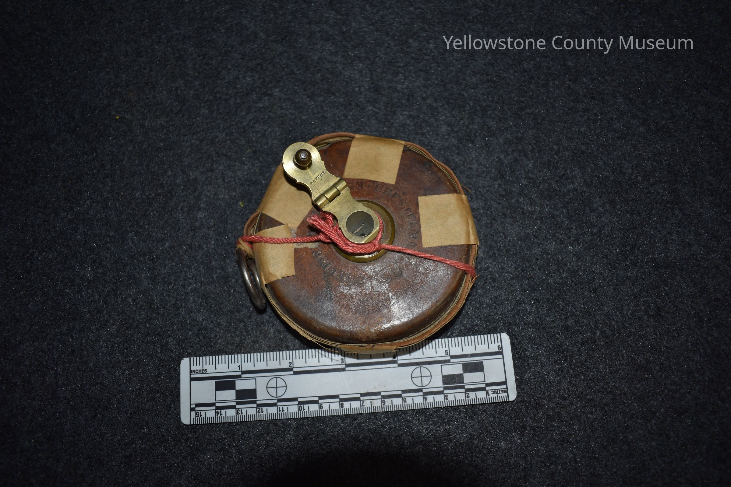 From an old label: "Was a writing tape made in England and used by Ed Glassner in making measurements for cross sections work of the railroad grade and the new river channel. Work along the Musselshell River when the Milwaukee Railroad. Edward Glassner lived on 702 Ave C. in Billings.Acquisition