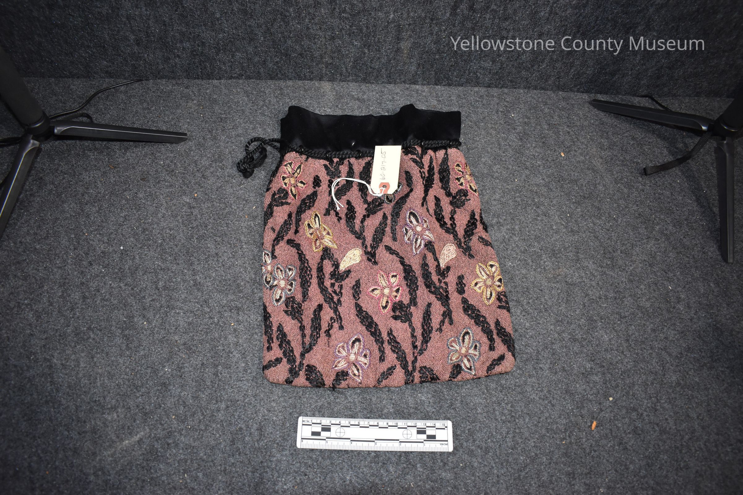 Slipper Bag, Brownish color with black trim and cord, 1905; within box stamped with John W. Thomas & CO, Minneapolis.Acquisition