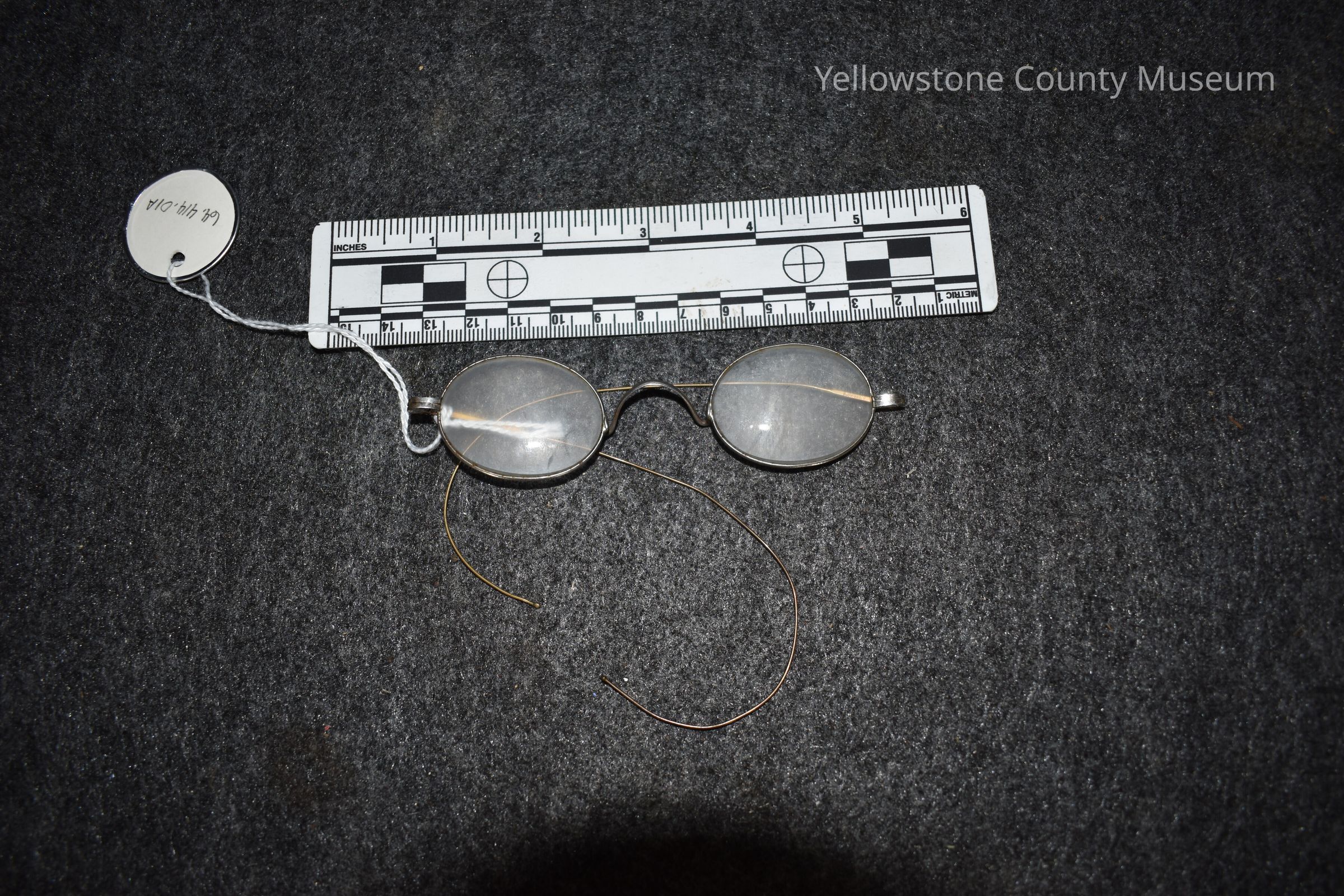 (414-1) Spectacles; May be 200 yrs. old. Case is of rusted metal. (1760-1860).